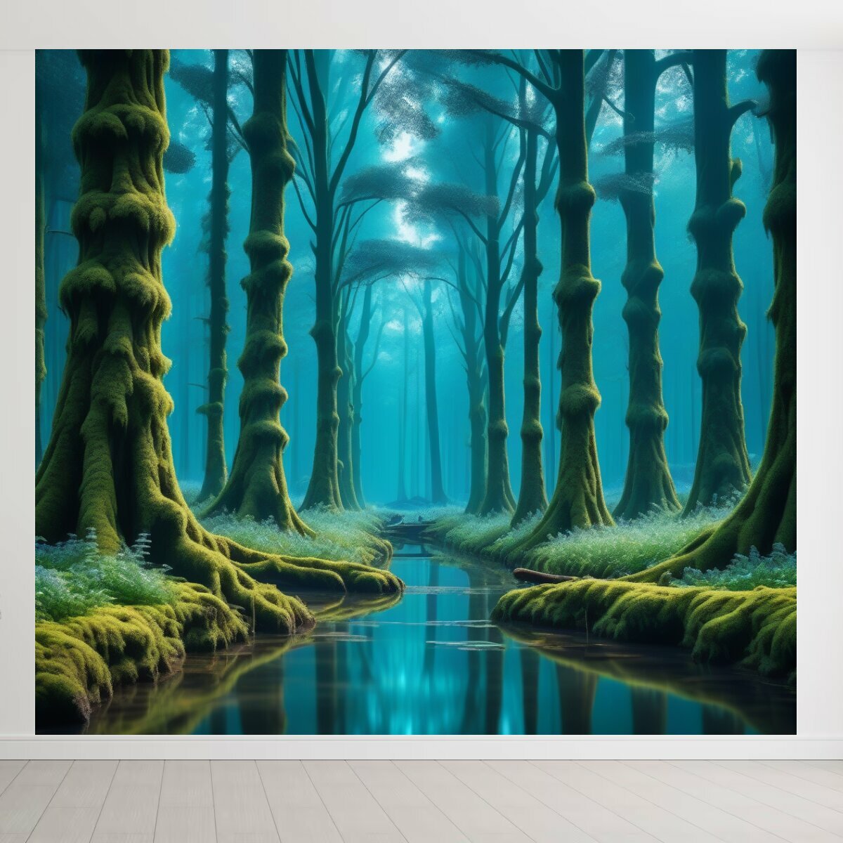 Фотообои моющиеся ударопрочные "Плавающие деревья и сказочный лес" 300x300 см. флизелиновые на стену