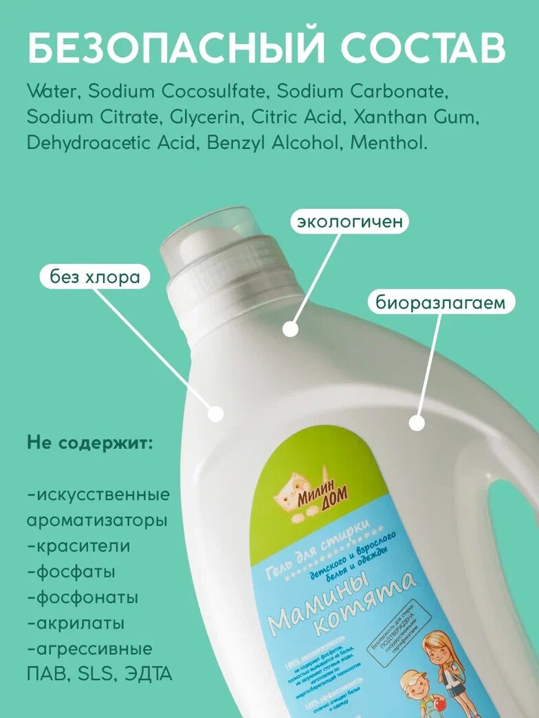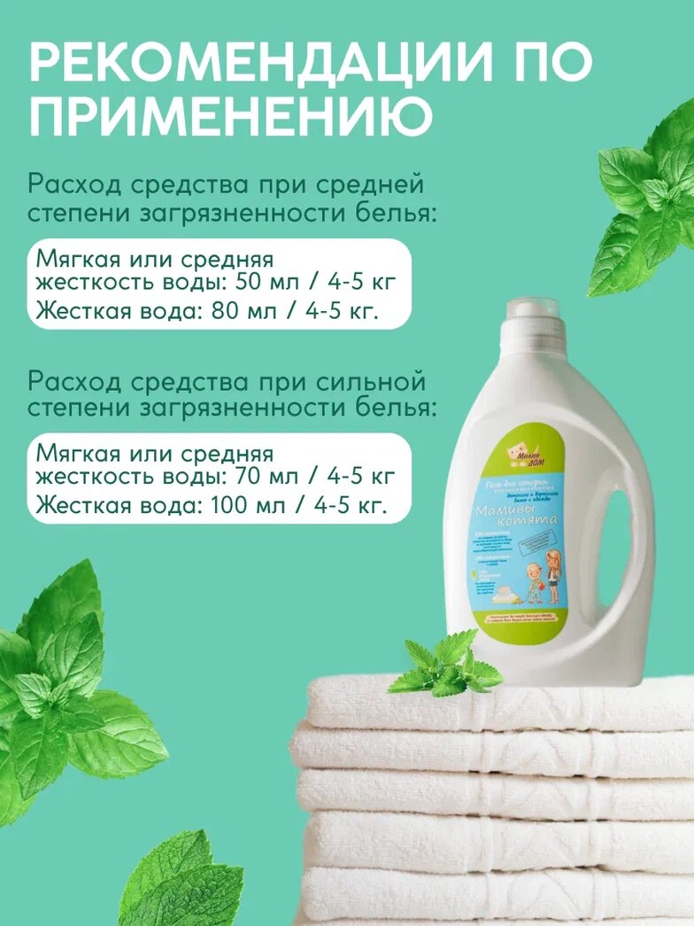 СохранитьГель для стирки детских вещей милин ДОМ "Мамины котята" с ароматом мяты, 2 литра интересное:
