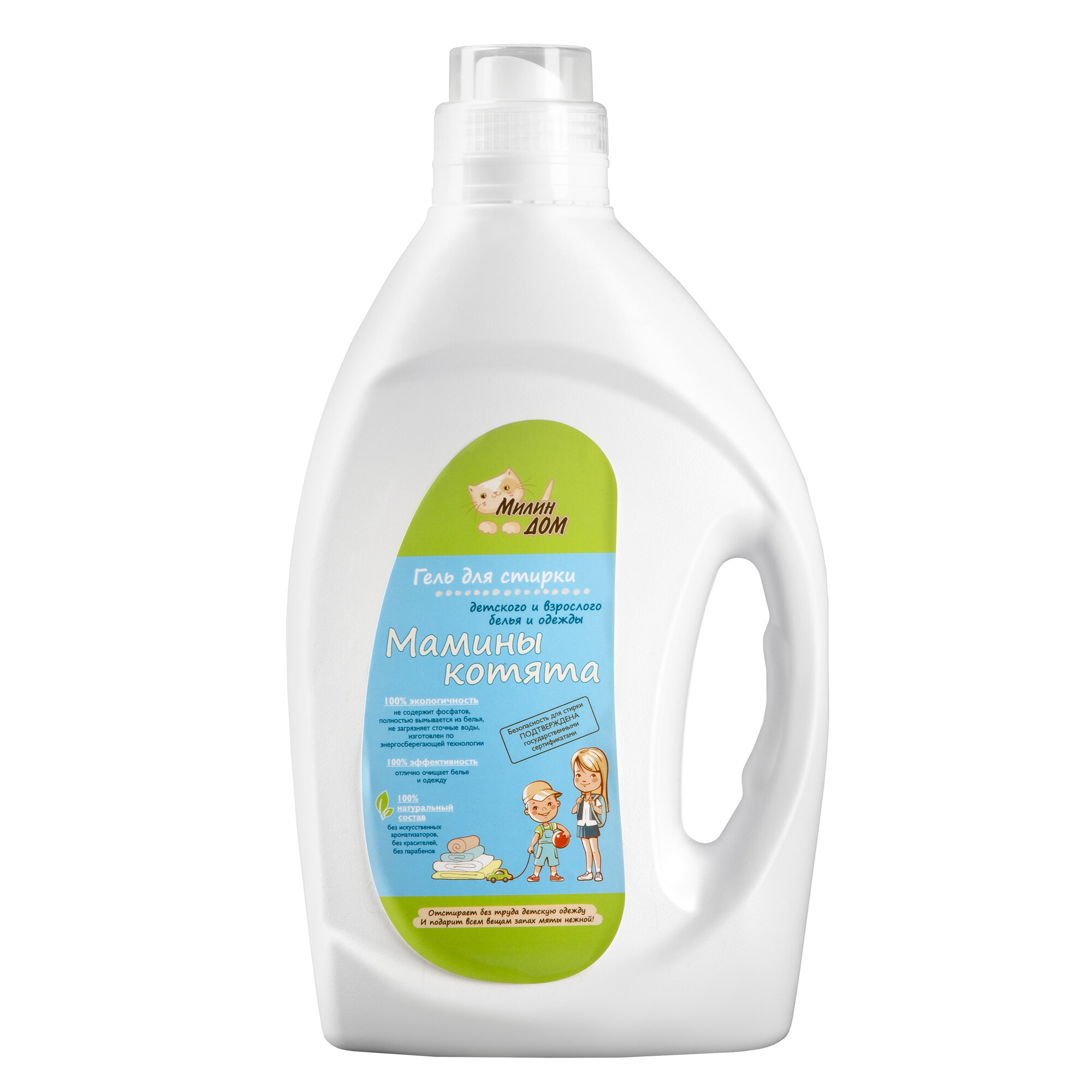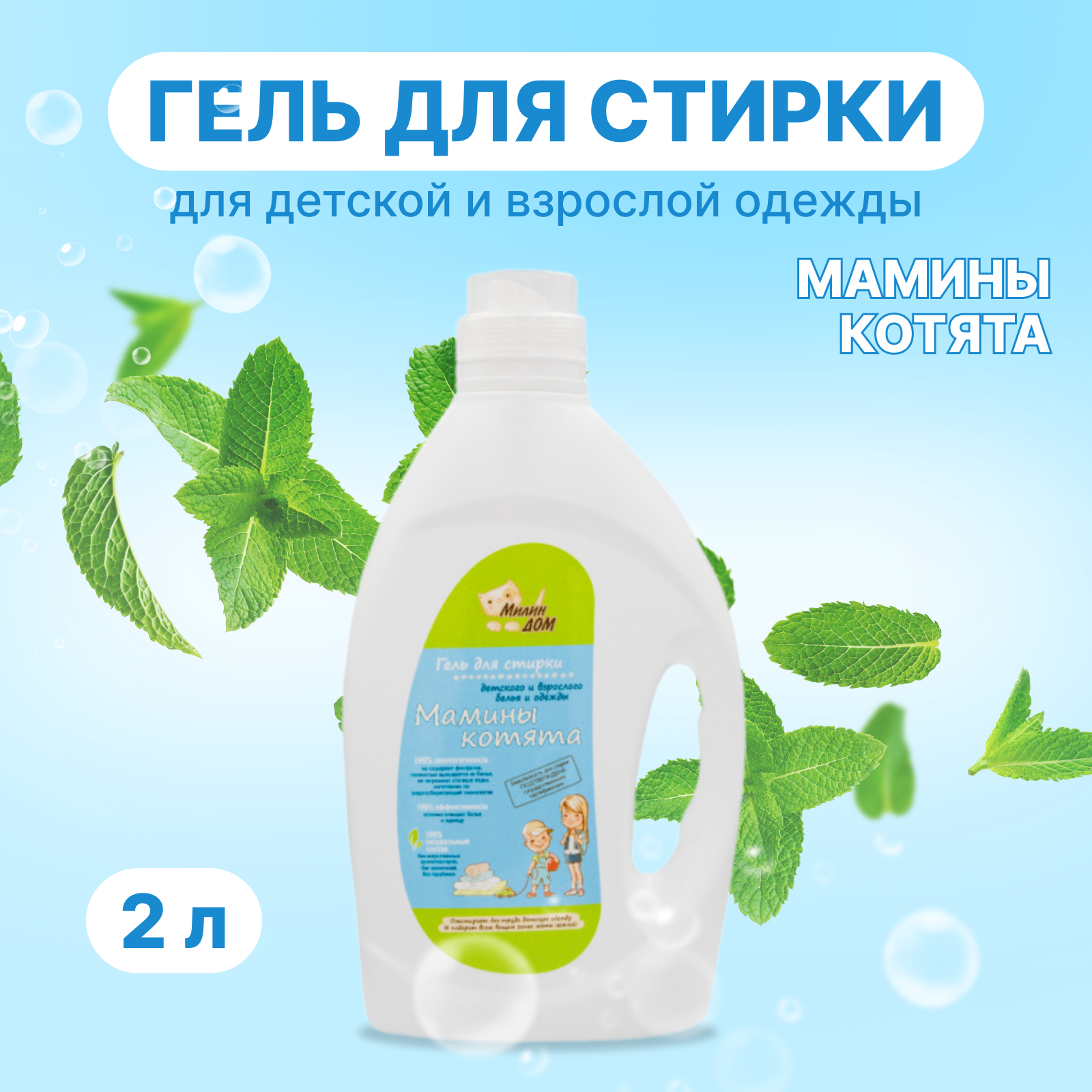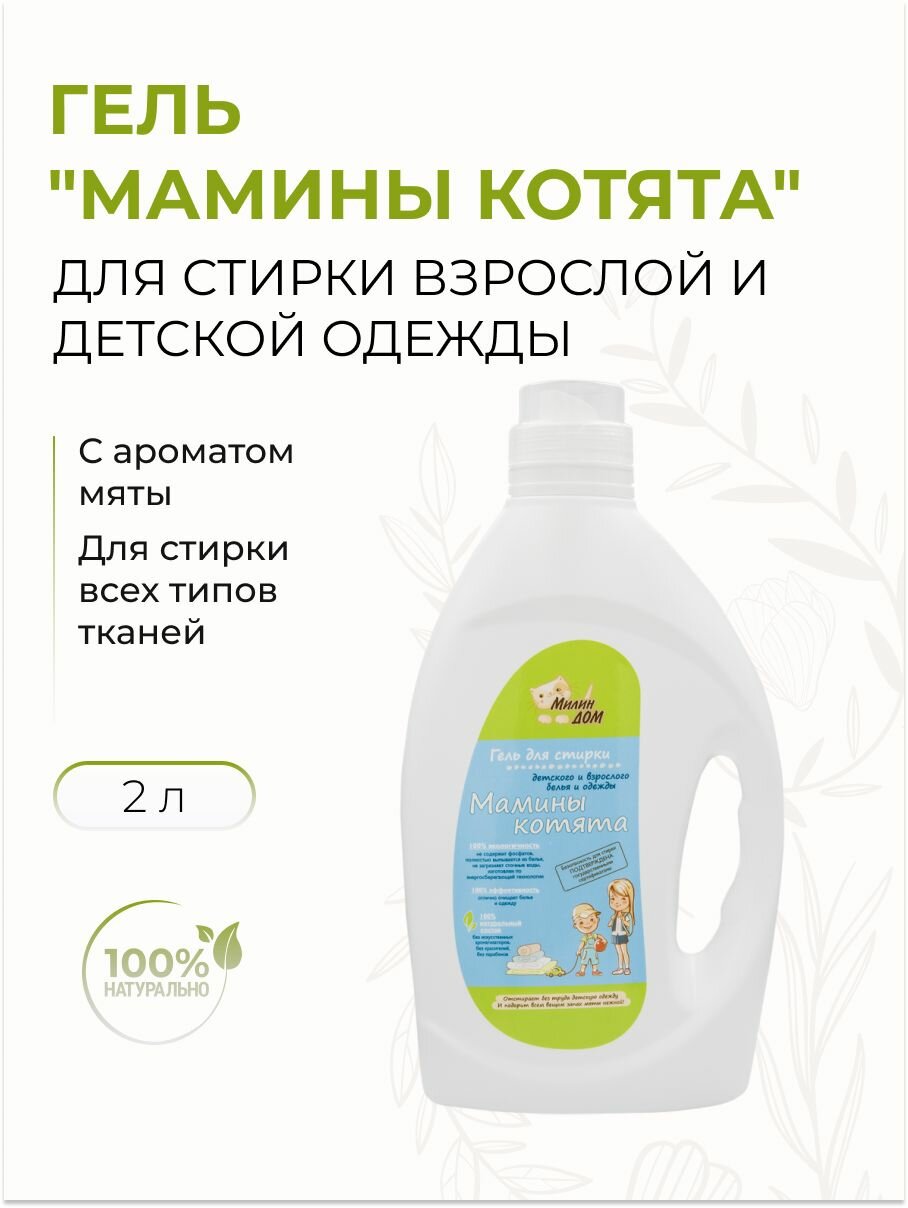 Купить Гель для стирки детских вещей милин ДОМ "Мамины котята" с ароматом мяты, 2 литра