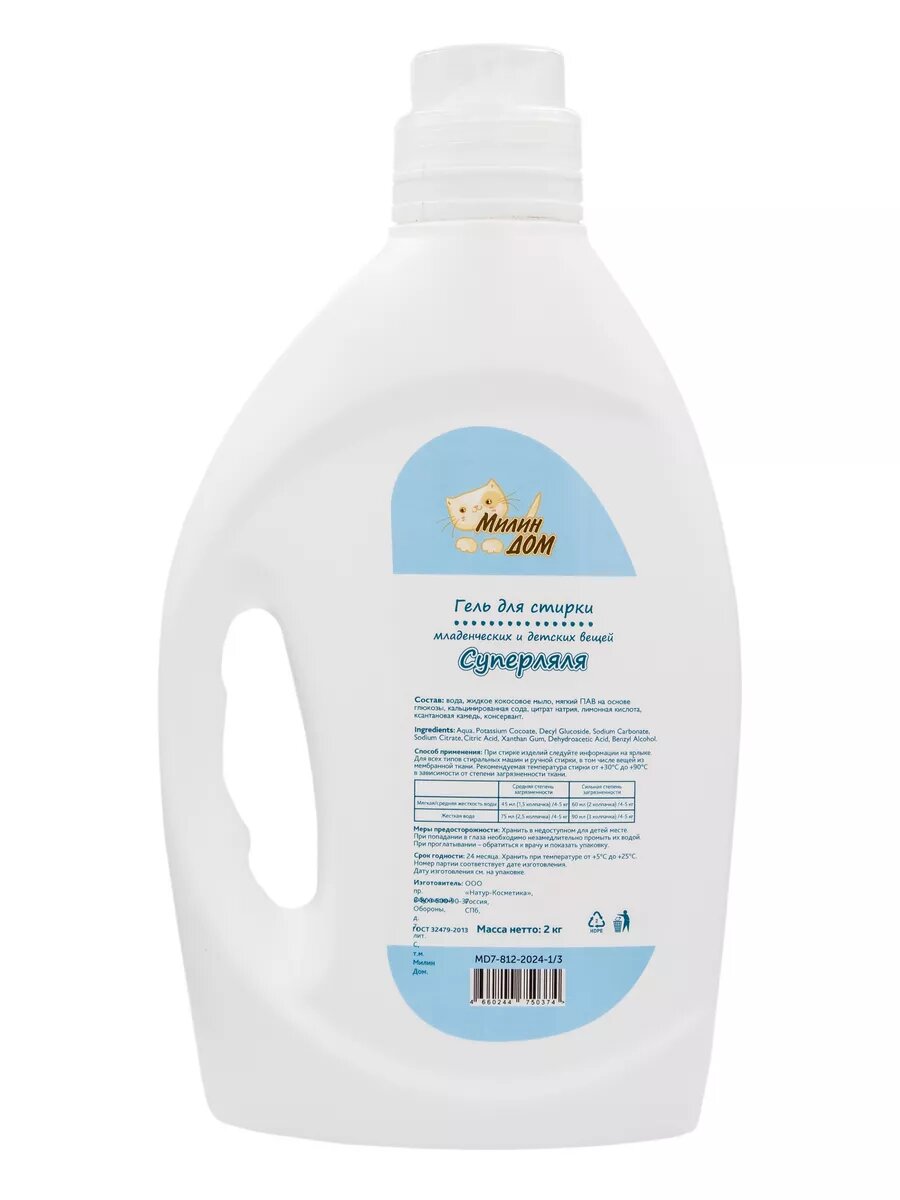 Купить Гель для стирки младенческих и детских вещей милин ДОМ "Суперляля" 0+ без отдушек, 2 литра