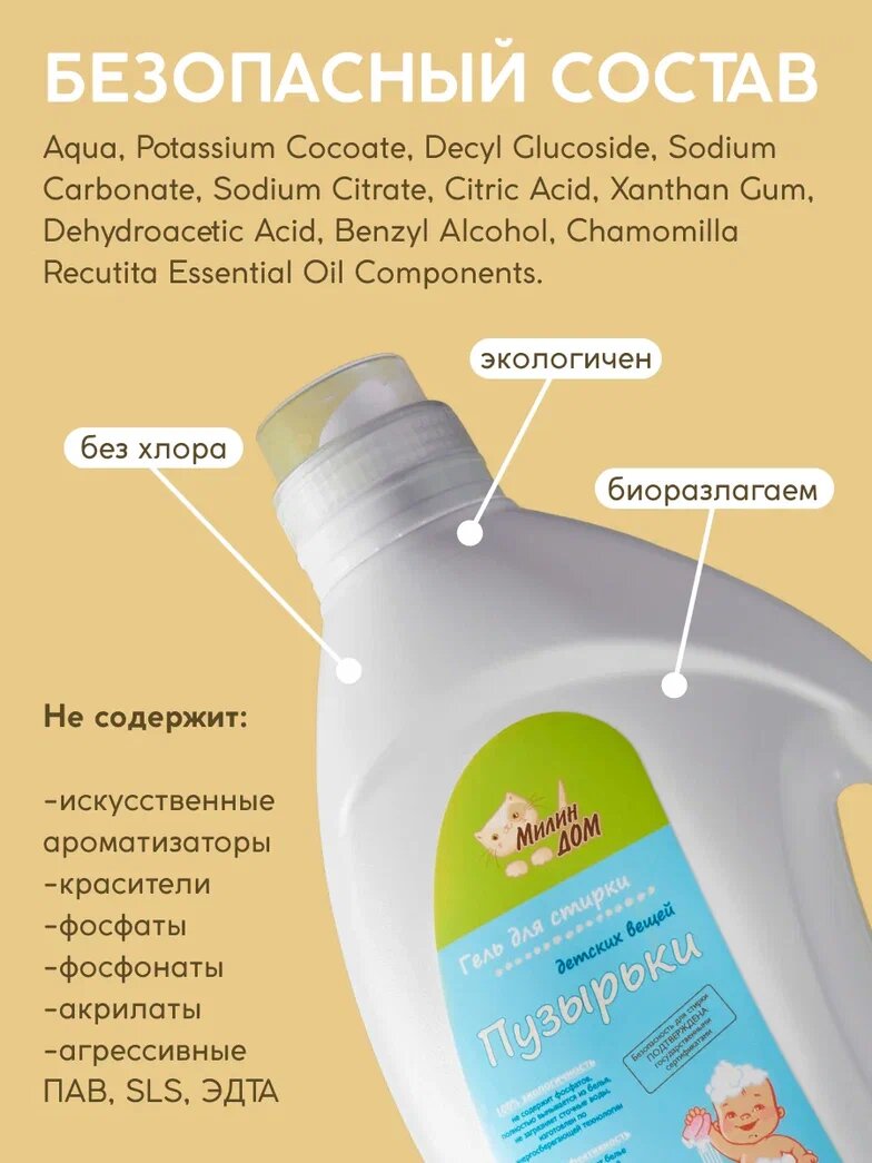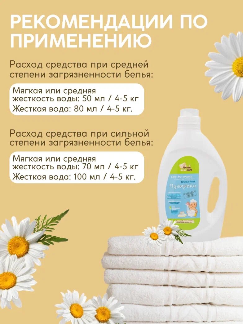 СохранитьГель для стирки детских вещей милин ДОМ "Пузырьки" 0+ с ароматом ромашки, 2 литра интересное: