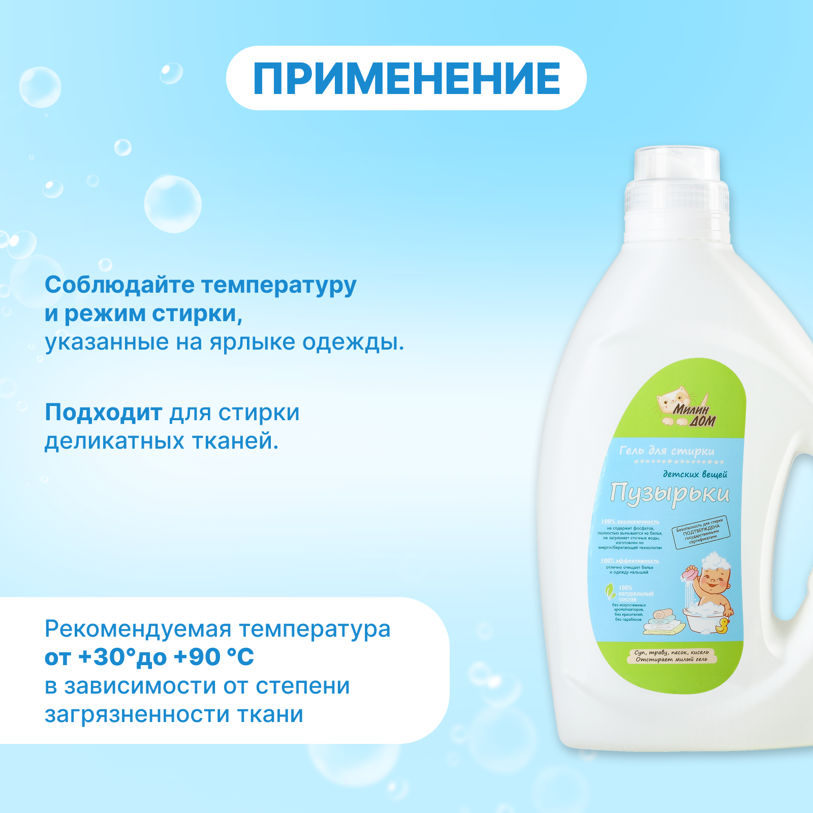 Купить Гель для стирки детских вещей милин ДОМ "Пузырьки" 0+ с ароматом ромашки, 2 литра