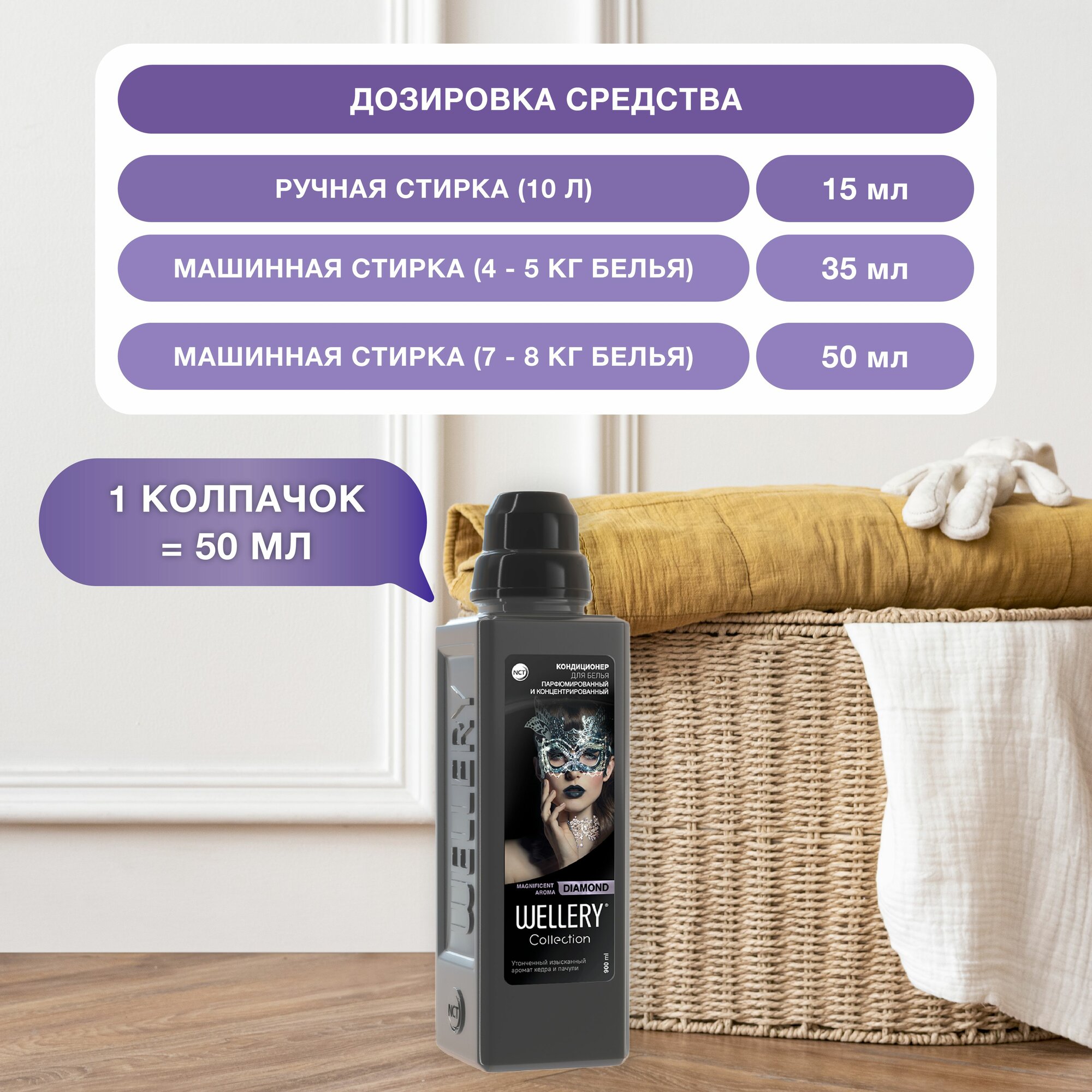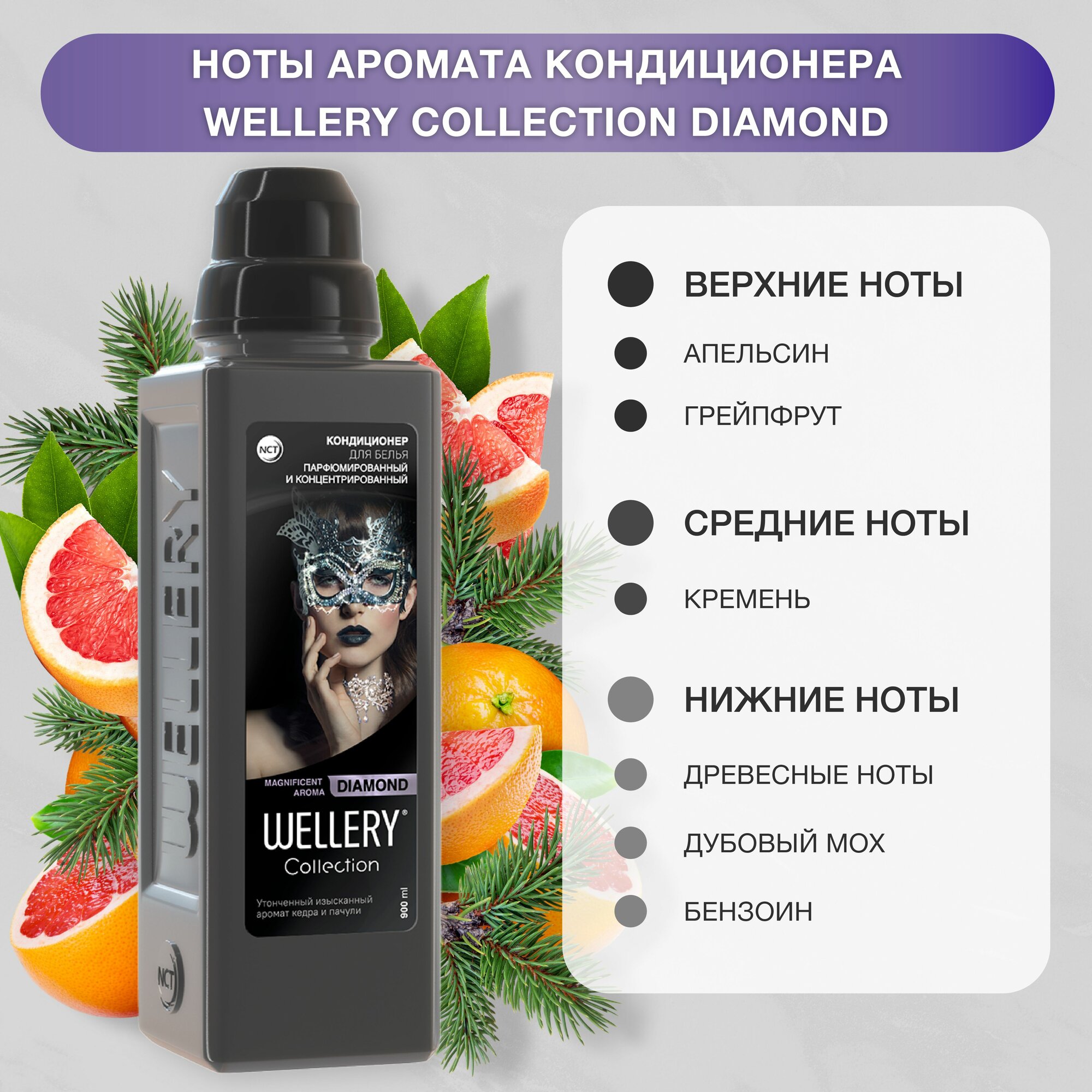 Wellery Парфюмированный кондиционер для белья, Collection DIAMOND, аромат кедра и пачули, 900 мл, Wellery