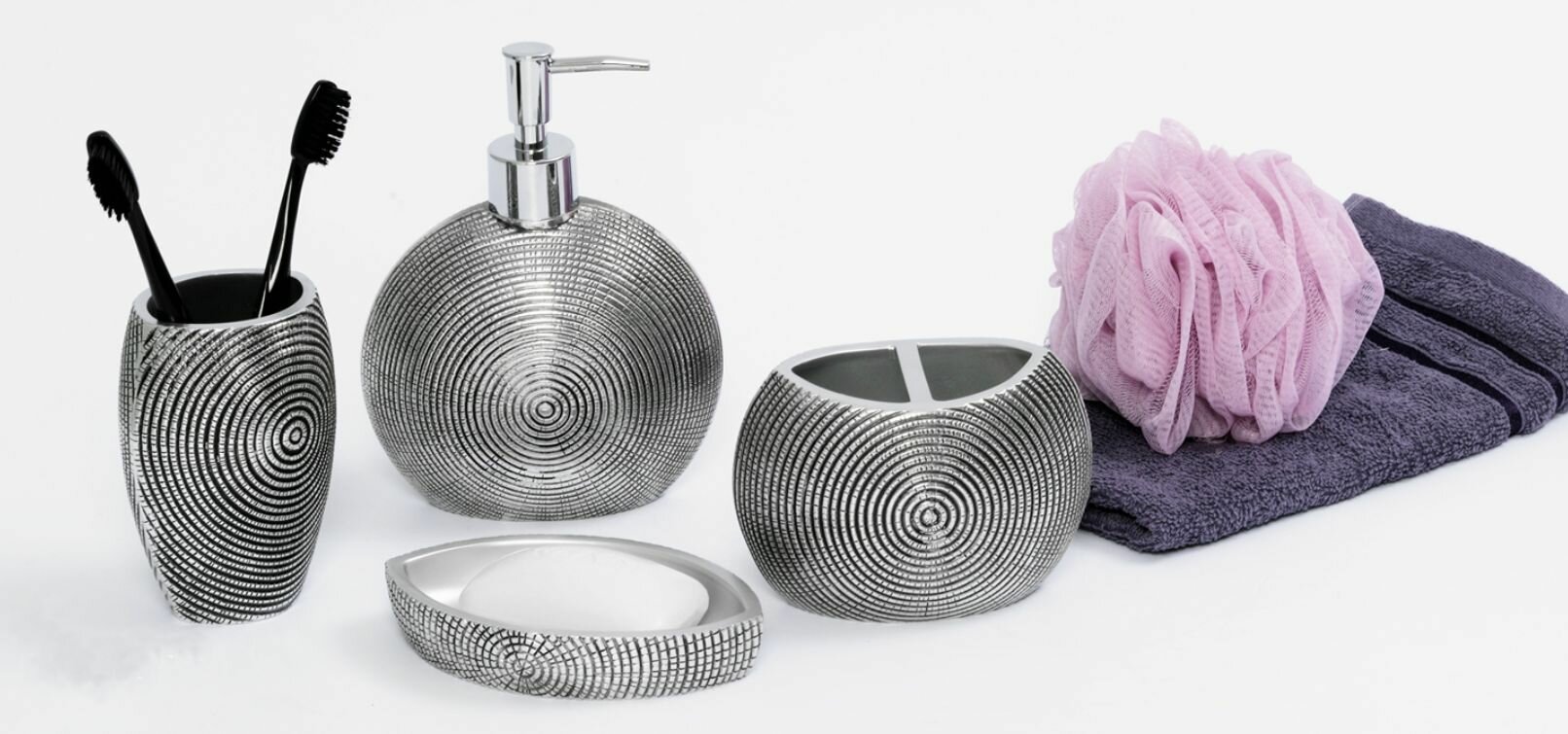Набор аксессуаров для ванной комнаты 3 предмета Elan Gallery Серебро (мыльница, дозатор, стакан)