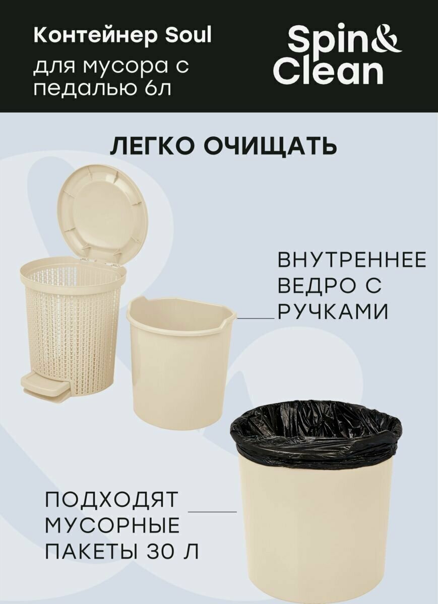 Контейнер для мусора с педалью Soul 6 л айвори Spin&Clean .