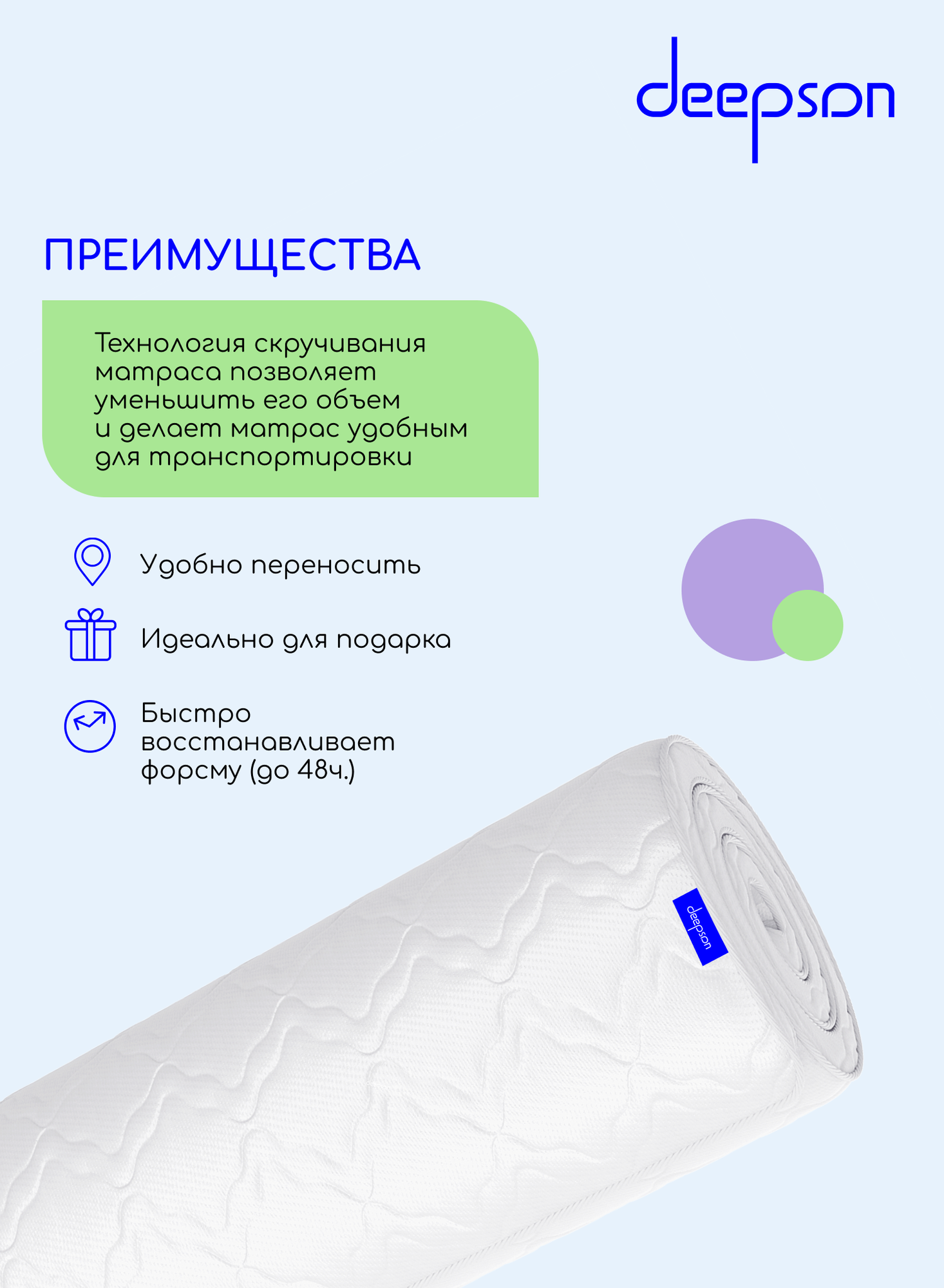 Матрас, Ортопедический матрас, Deepson Fine Roll 10 Relax Hard LUX средней и выше средней жесткости, Детский, Беспружинный, На кровать 75x200 интересное: