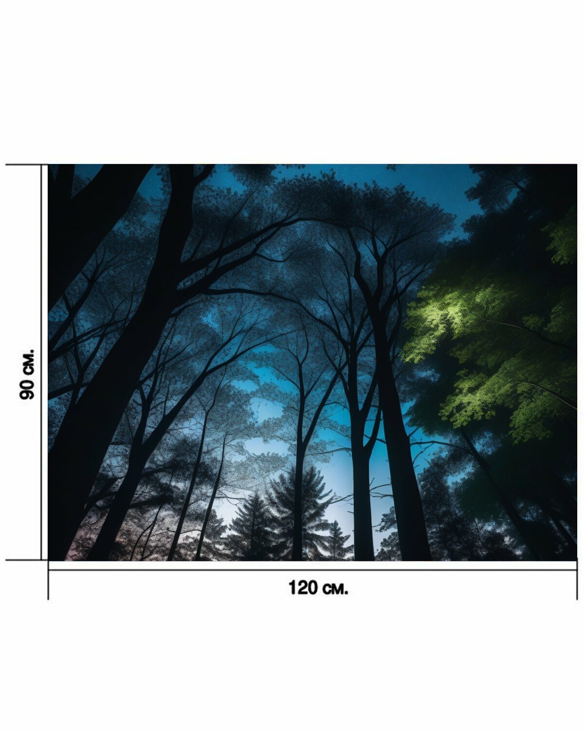 Картина на холсте "Лунный свет, пробивающийся сквозь деревья" с подвесами 240х90 см. для интерьера на стену