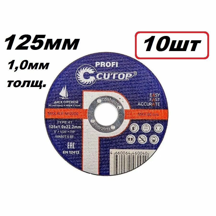 Профессиональный диск отрезной по металлу и нержавеющей стали Cutop Profi Т41-125 х 1.0 х 22.2 мм CUTOP 39983т