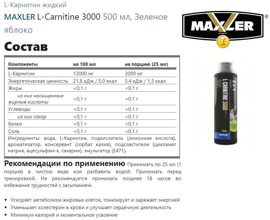 СохранитьКарнитин MAXLER L-Carnitine 3000 мг, Зеленое яблоко 500 мл интересное: