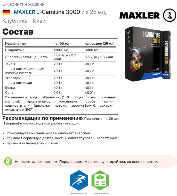 | Отзыв: | В целом хороший L-карнитин, можно юзать. |