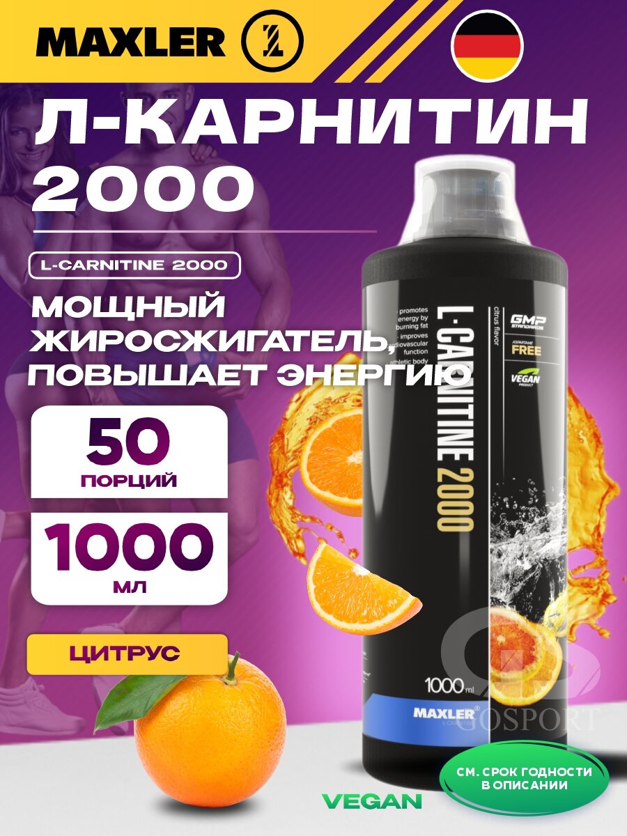 Жиросжигатель MAXLER L-Carnitine 2000, 1000 мл, цитрус