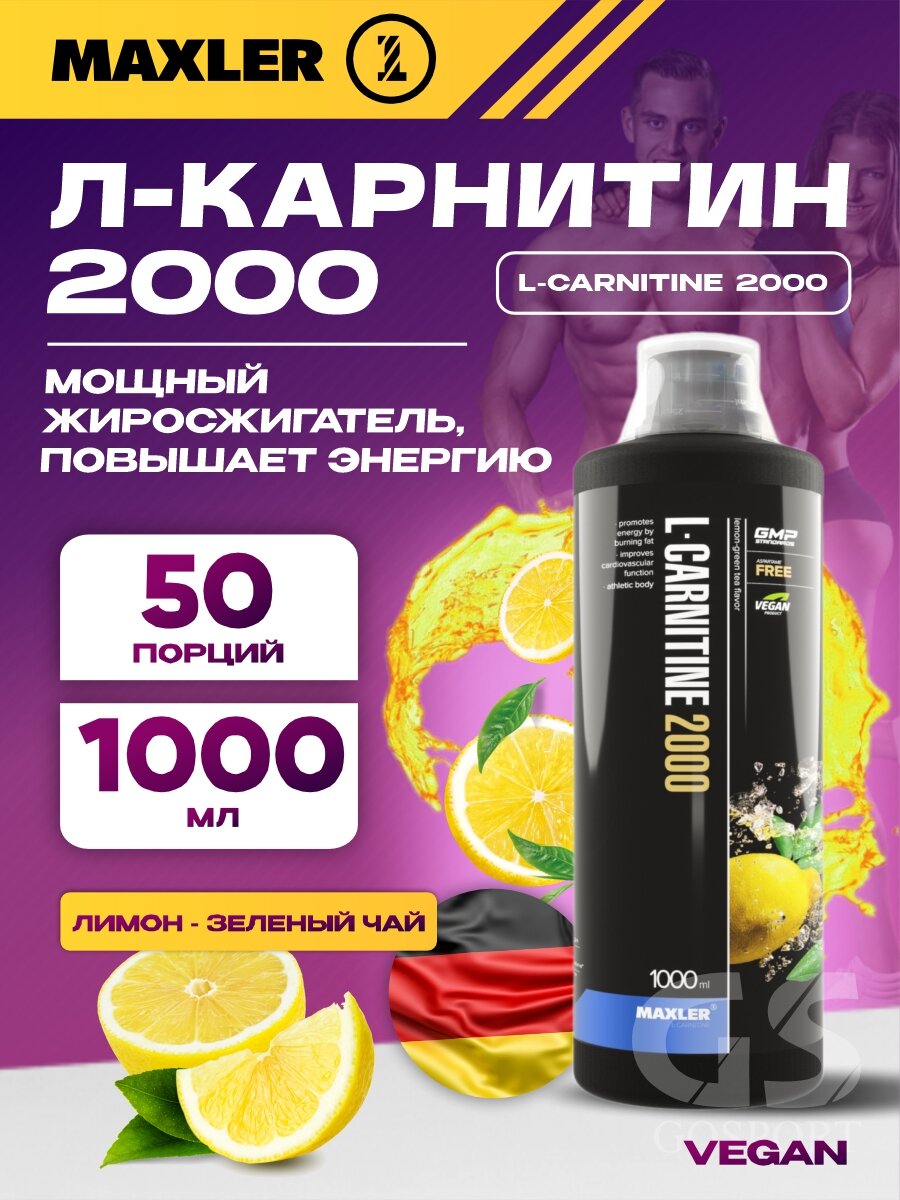 Жиросжигатель MAXLER L-Carnitine 2000, 1000 мл, зеленый чай-лимон