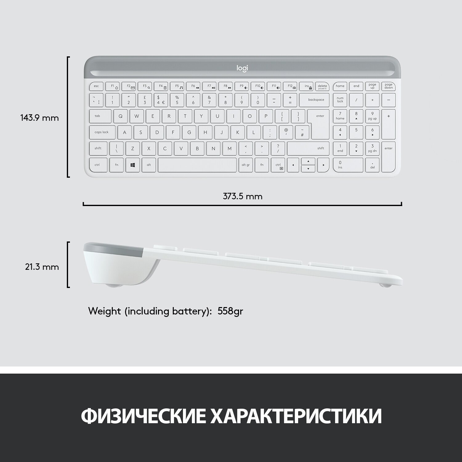 Клавиатура Logitech K580 Slim белый, Кириллица + QWERTY