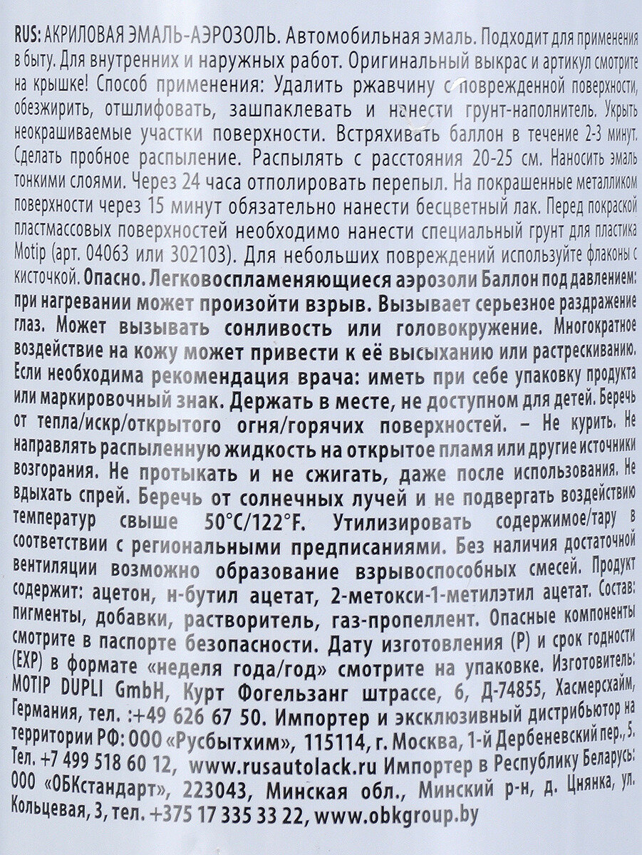 MOTIP аэрозольная автоэмаль Autolack Acryl 360-2 МЕ сочи, 400 мл