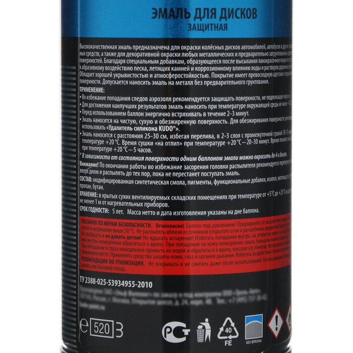 KU-5205 Эмаль для дисков стальная (520мл.), KUDO KU5205 (1 шт.)