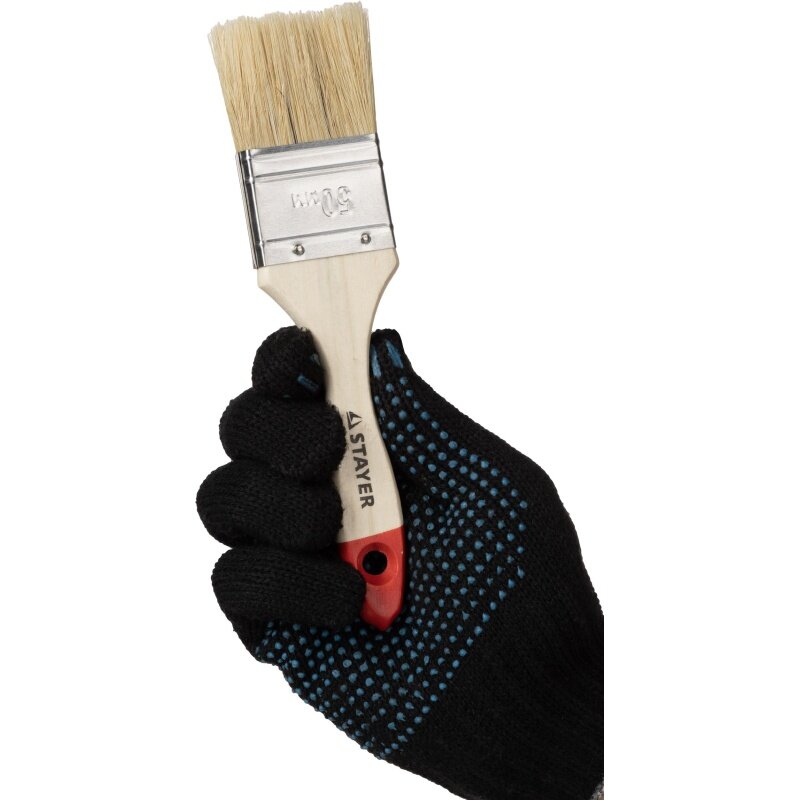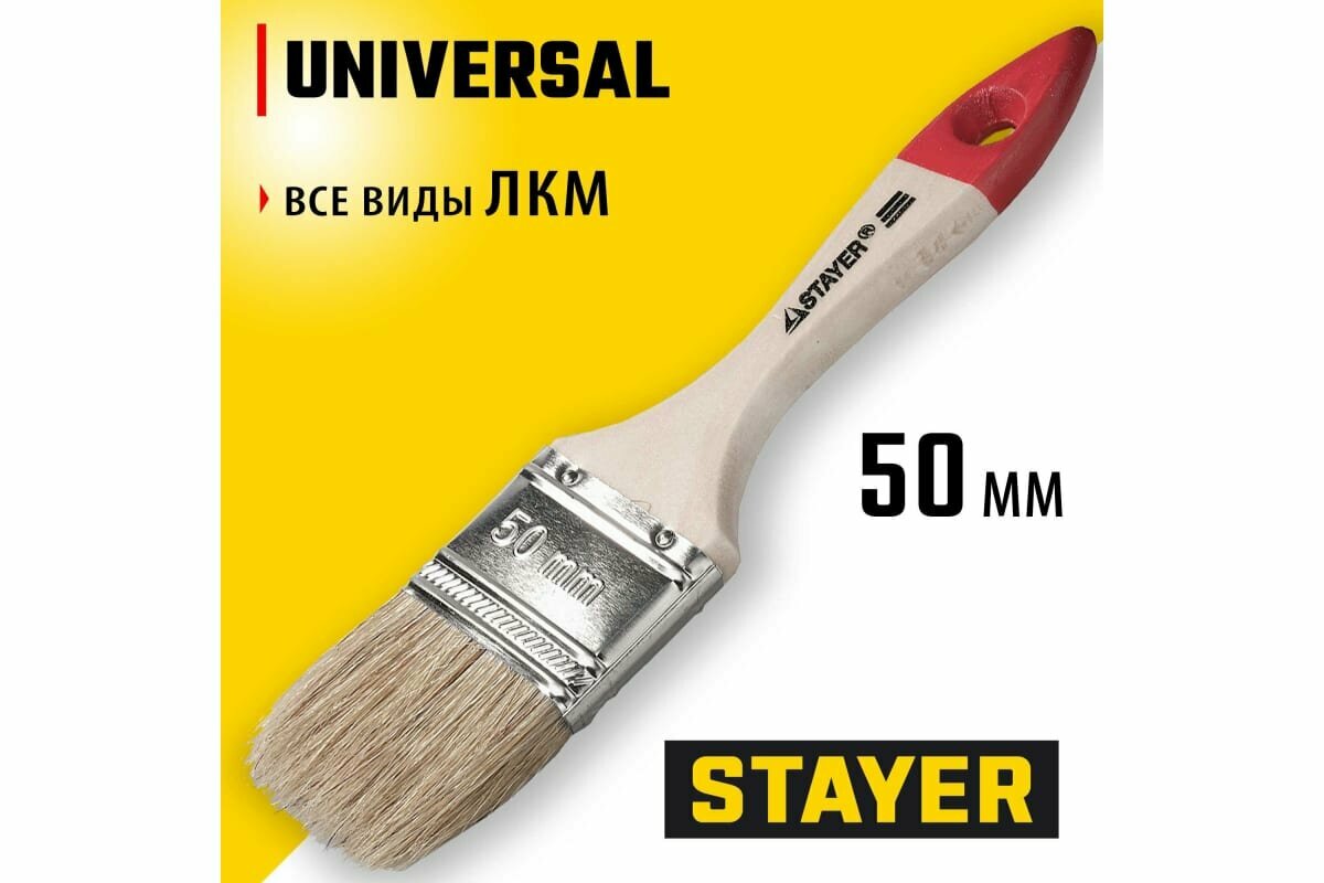 STAYER 0101-050 Кисть плоская ″UNIVERSAL-STANDARD″, светлая натуральная щетина, деревянная ручка, 50 мм