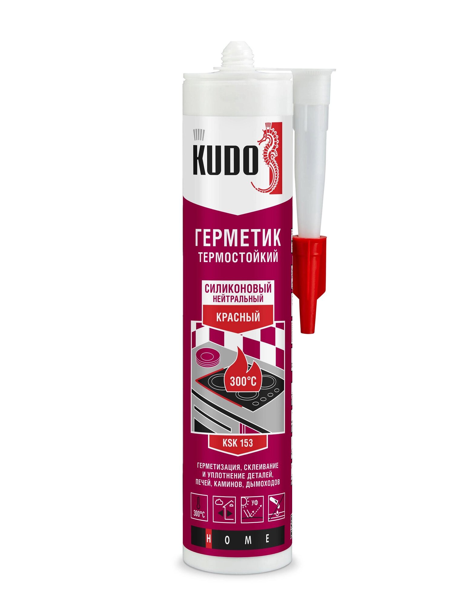 Герметик силиконовый нейтральный Kudo KSK-153, высокотемпературный, 280 мл, красный