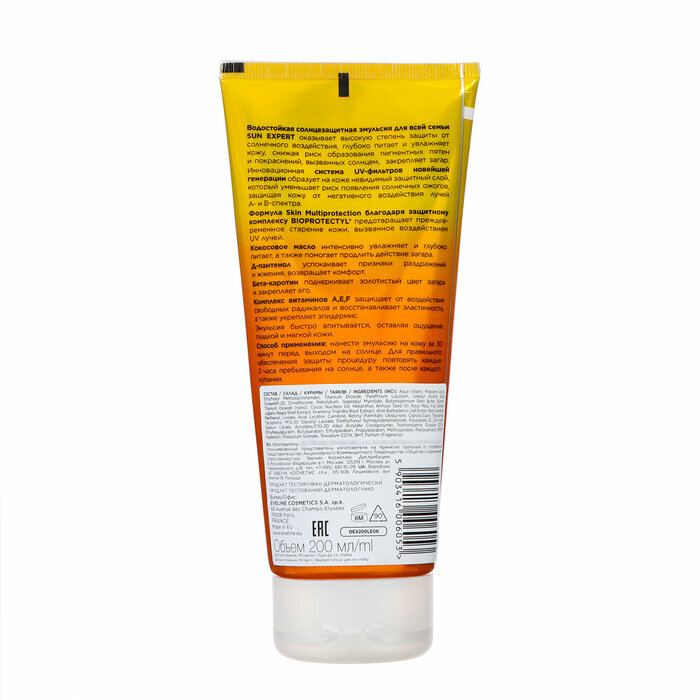 Eveline Cosmetics Эмульсия солнцезащитная Sun care, водостойкая, spf 30, 200 мл/