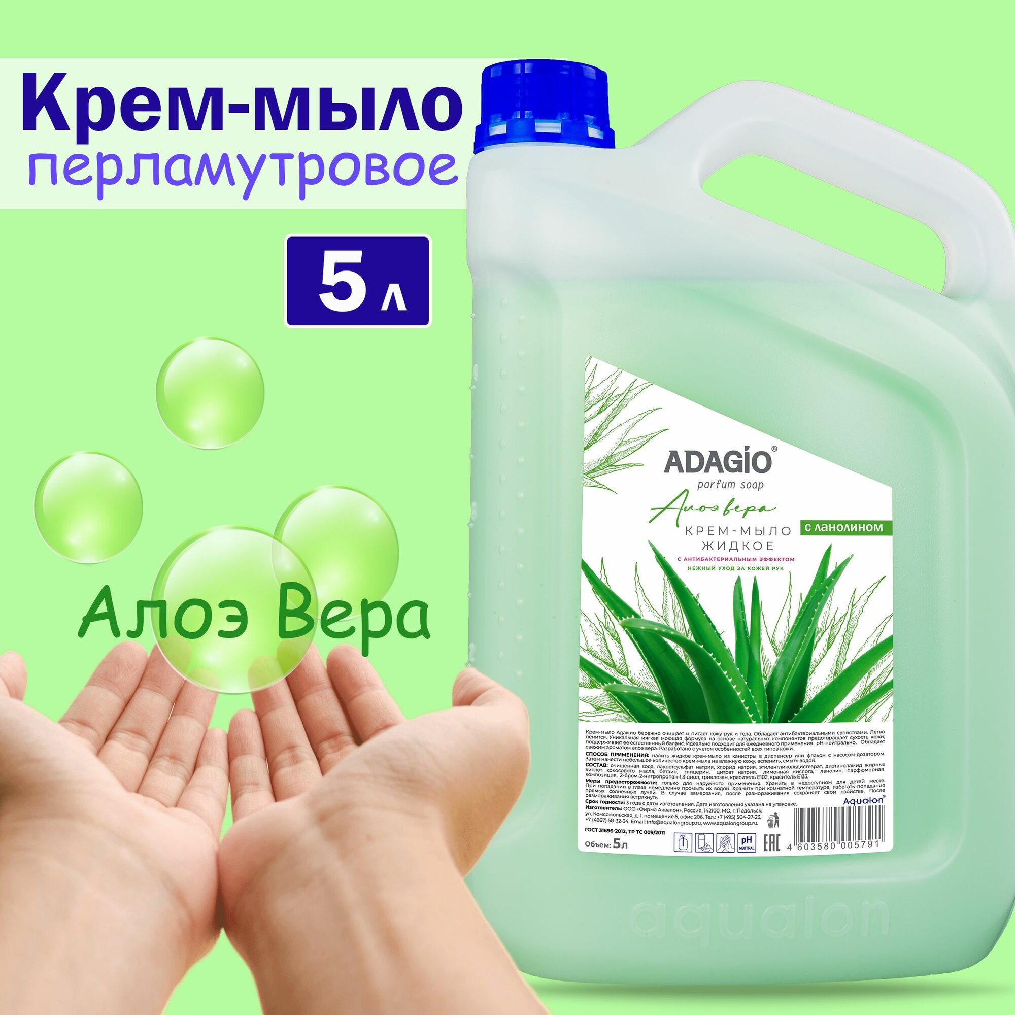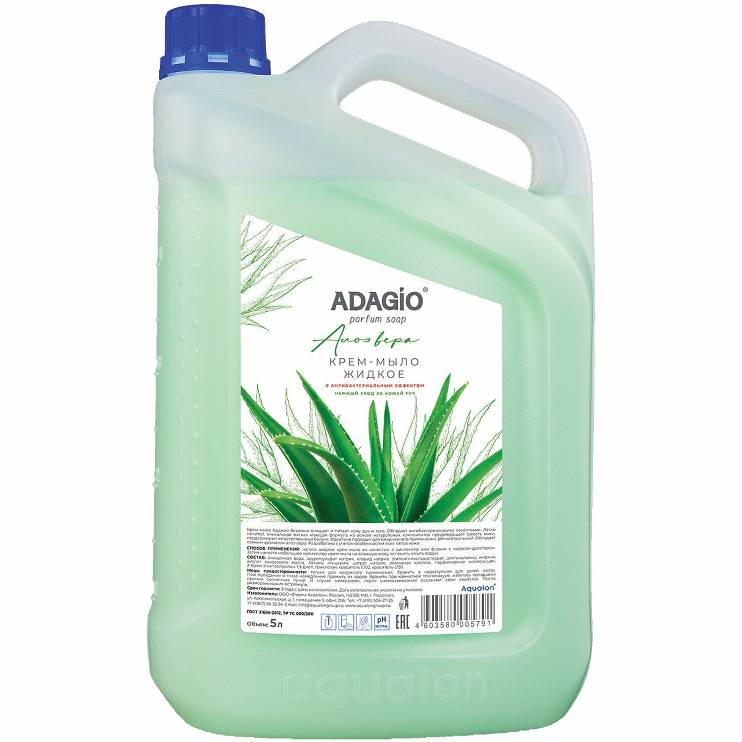 Мыло-крем жидкое 5 л адажио "Алоэ Вера", премиум, перламутровое, антибактериальное, ГОСТ, 175791 В комплекте: 1шт.