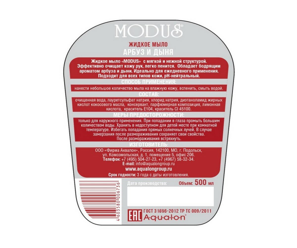 Мыло жидкое MODUS Арбуз и дыня, 500мл 1736520 стандарт