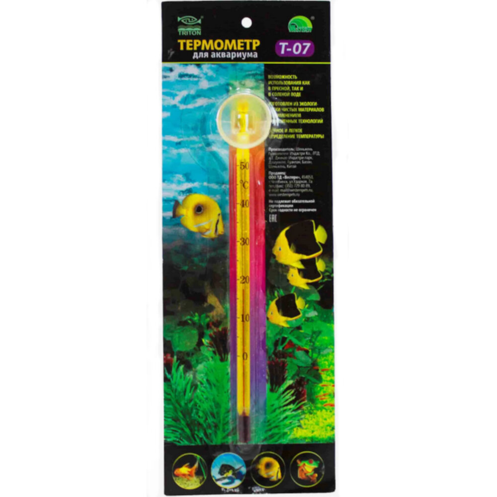 Термометр аквариумный, Triton, Т-07, стеклянный, 1 шт. интересное: