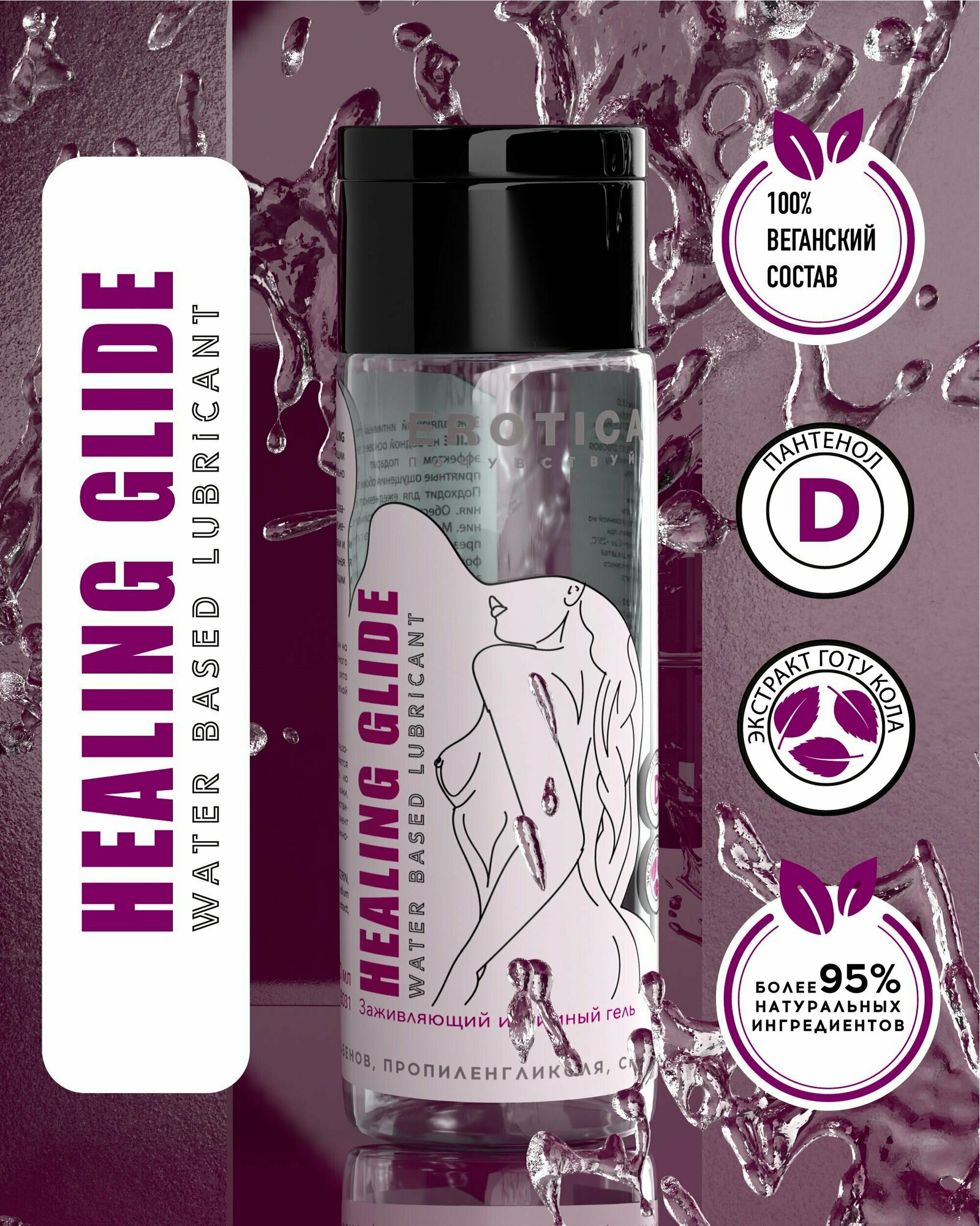 Купить Заживляющий интимный гель EROTICA HEALING GLIDE на водной основе, гель для члена, смазка, лубрикант для секса