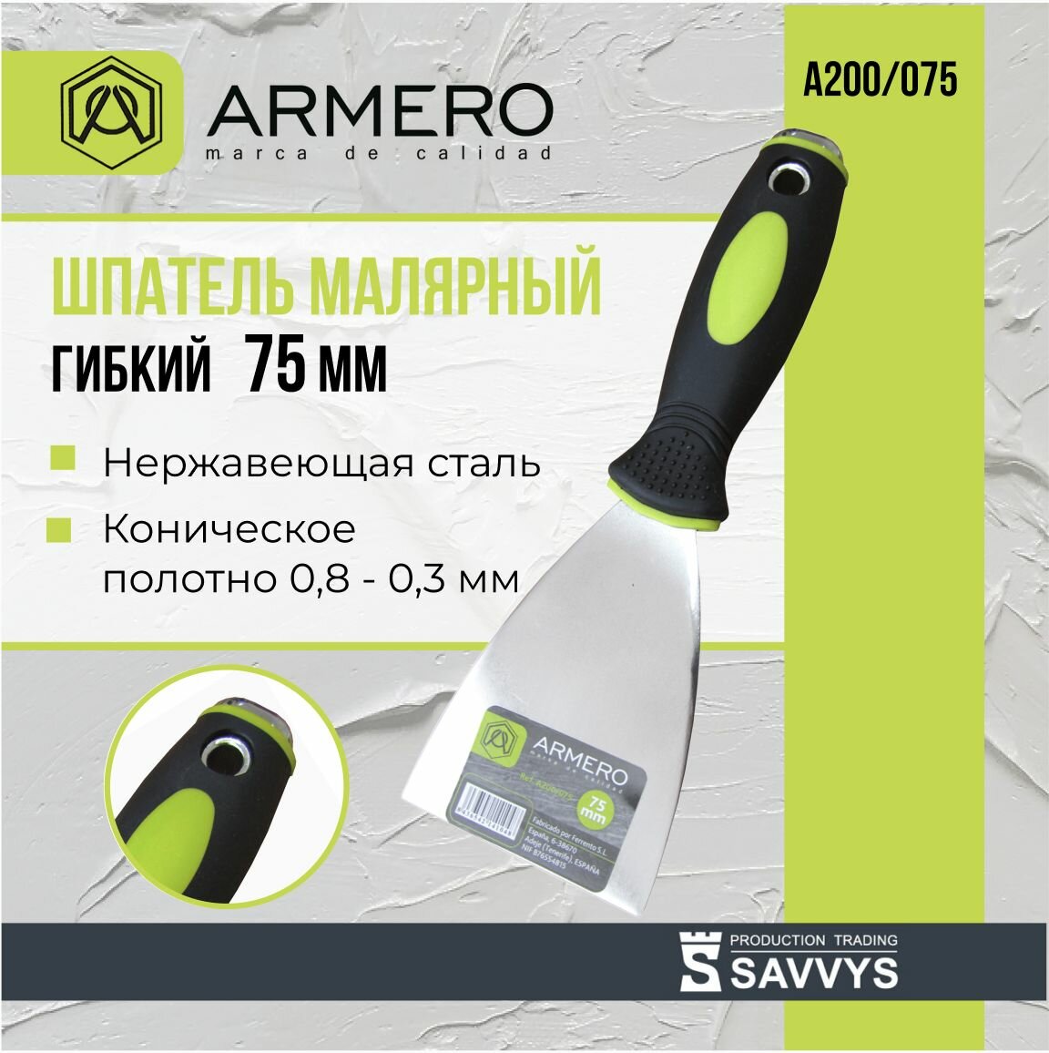 СохранитьШпатель малярный 75 мм ARMERO А200/075 интересное: