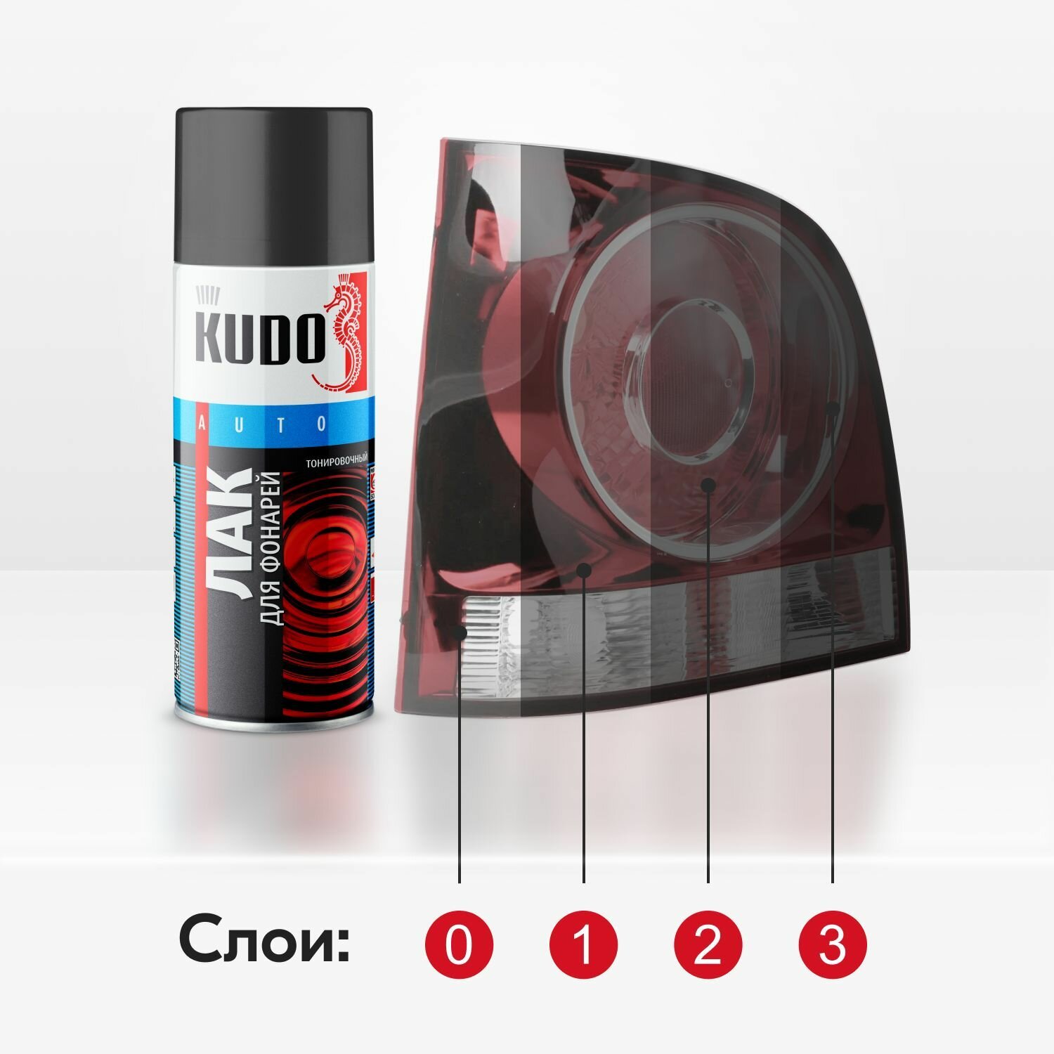 KUDO KU-9022 Лак для тонировки фар красный 520 мл