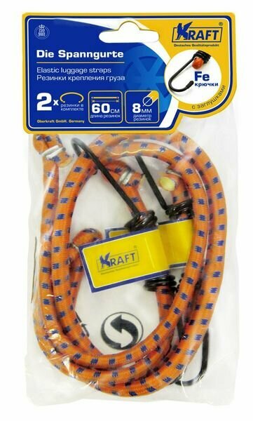 KRAFT KT860001 Набор резинок в багажник (80 см) "KRAFT" (D=8 мм, метал. крючки) (2 шт.)