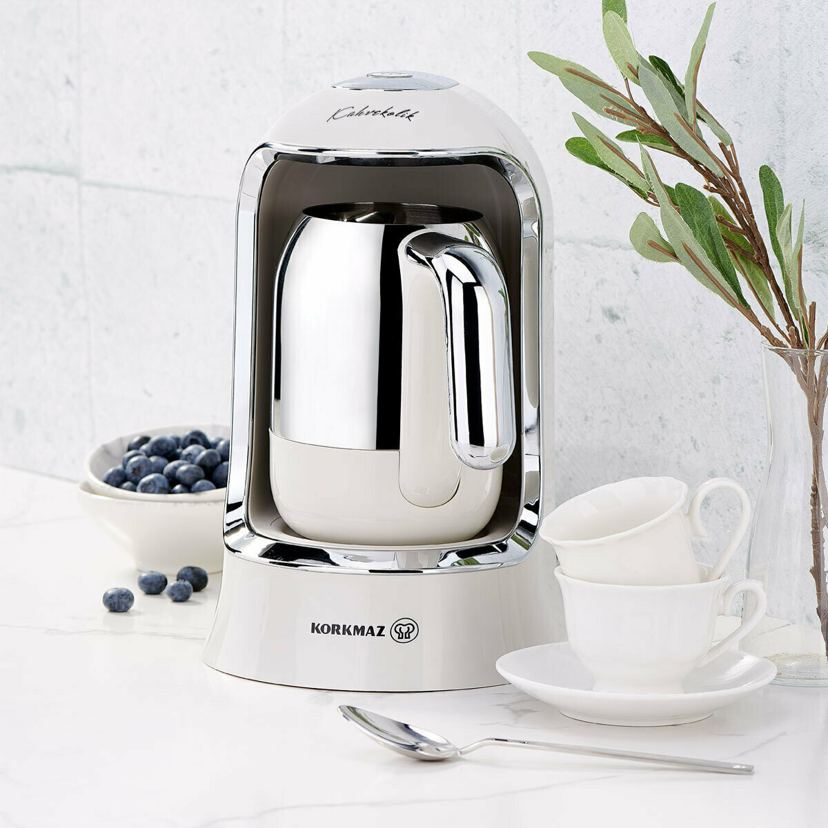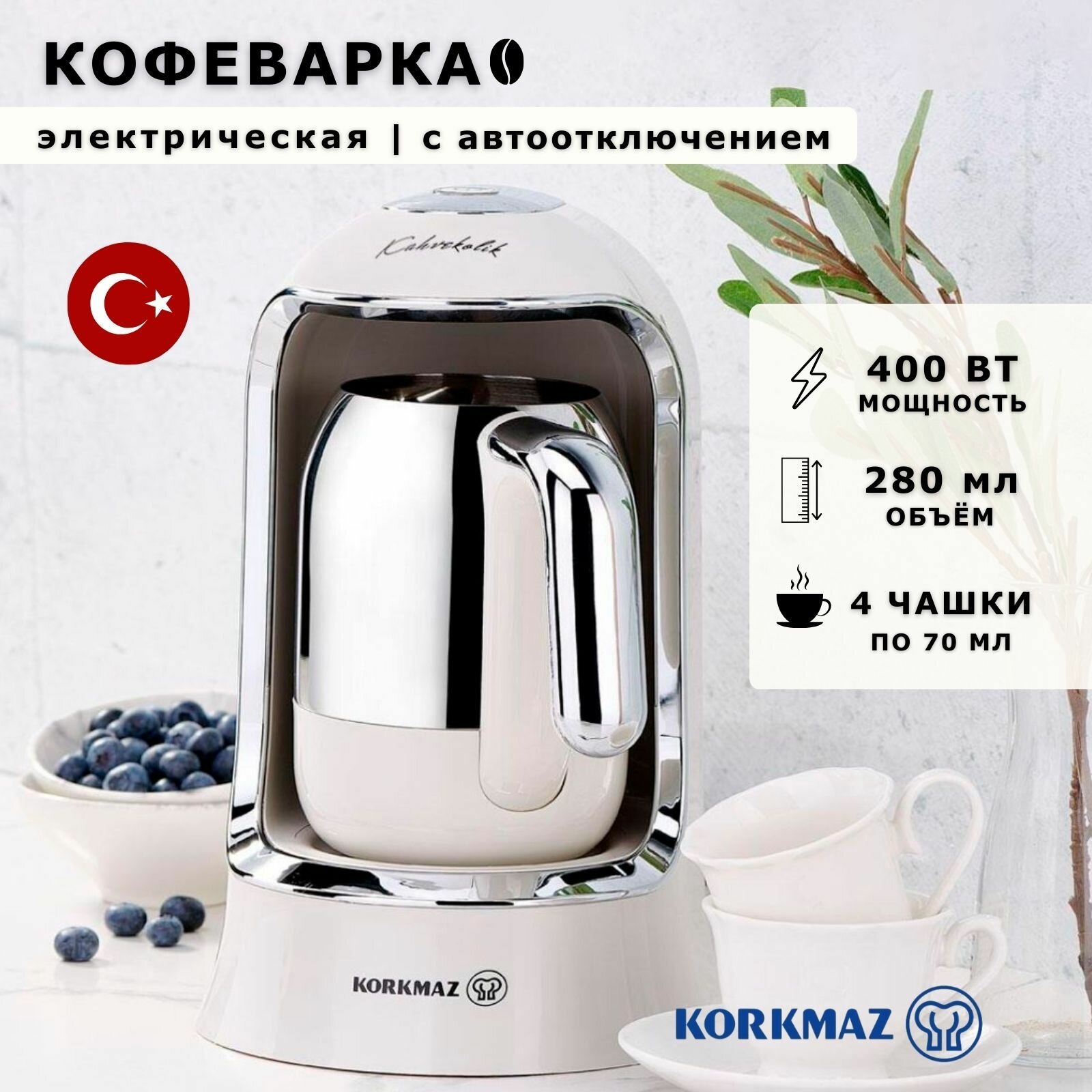 Кофеварка электрическая, кофемашина, турка для кофе, 280мл, Korkmaz Kahvekolik, 400W с автоотключением, слоновая кость