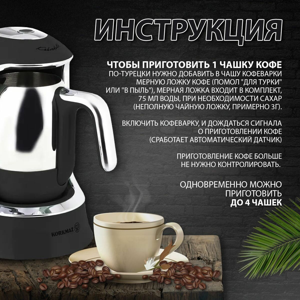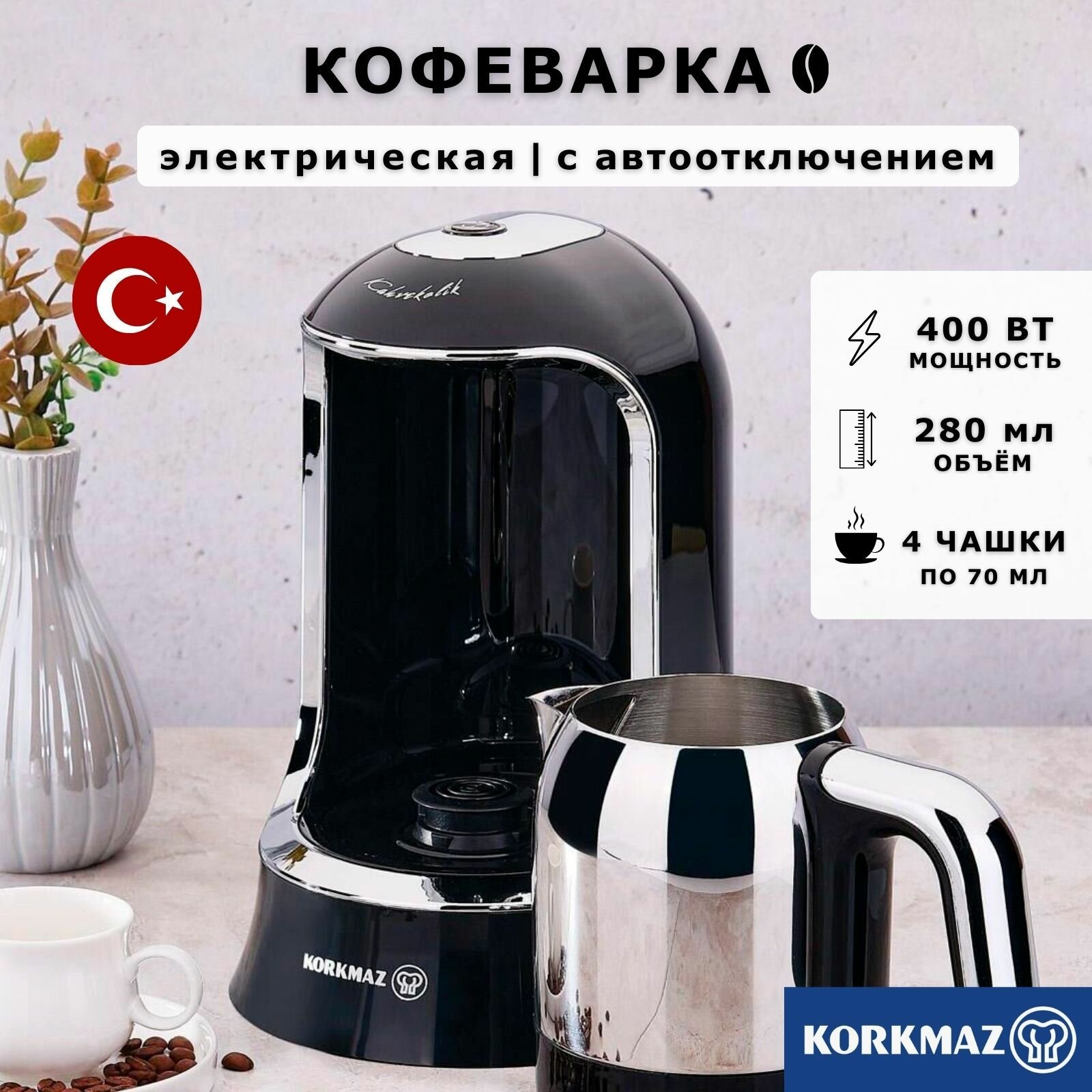 СохранитьКофеварка электрическая, кофемашина, турка для кофе, 280мл, Korkmaz Kahvekolik, 400W с автоотключением, черный интересное: