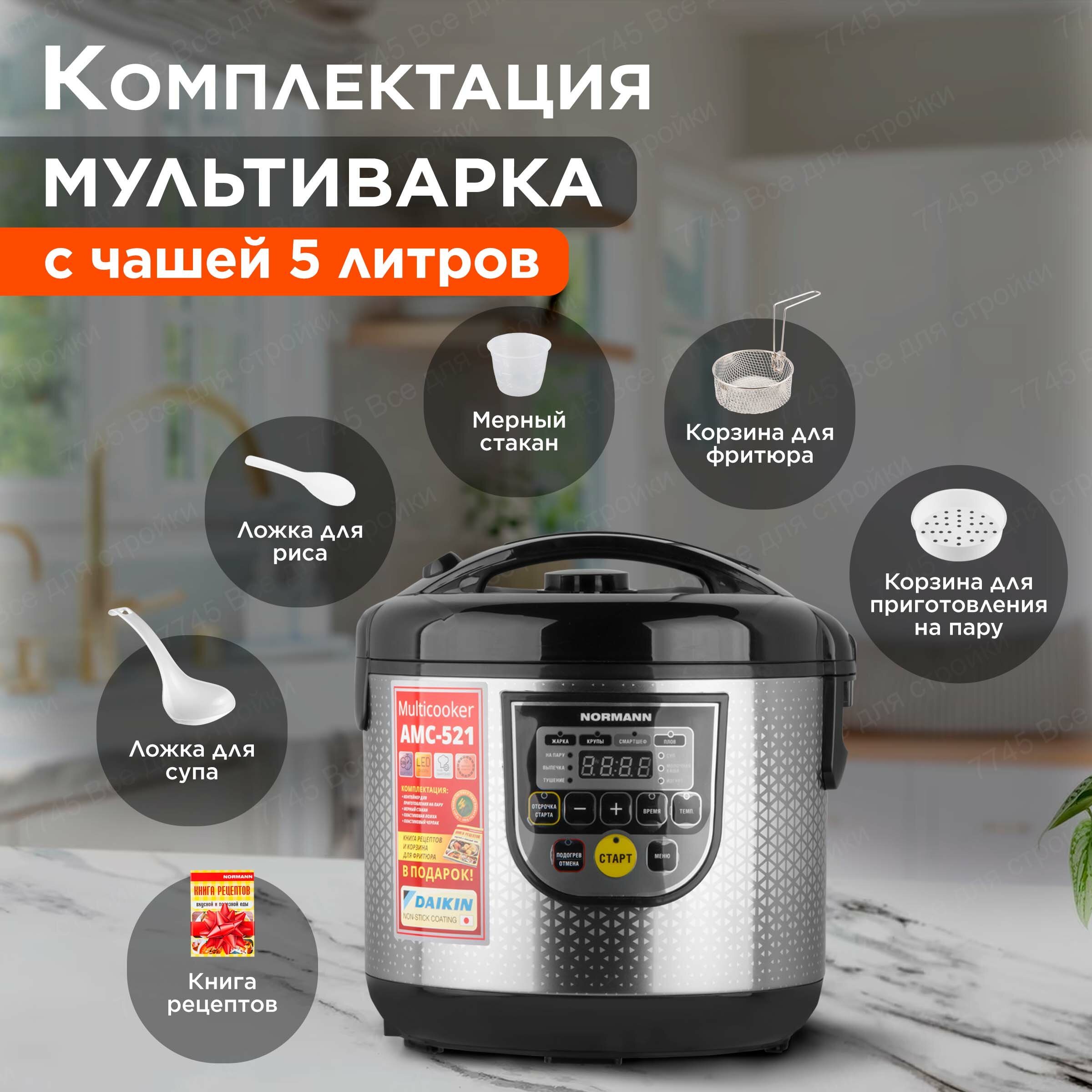 Мультиварка 5 литров с антипригарным покрытием электрическая NORMANN AMC-521