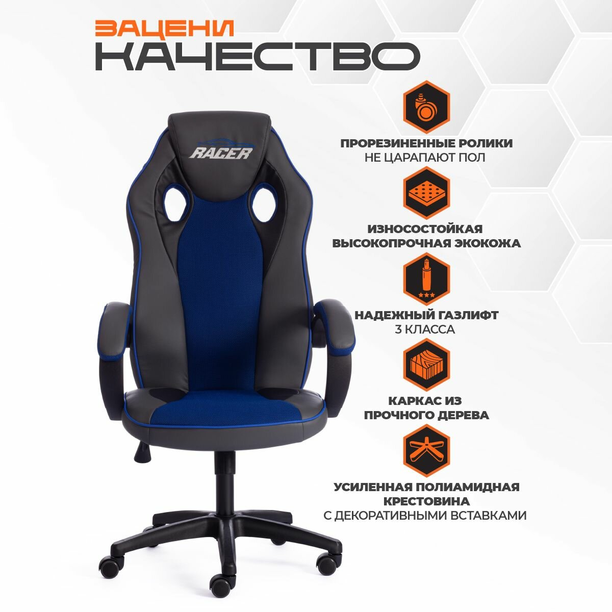 Кресло компьютерное Tetchair RACER GT new экокожа ткань металлик синий