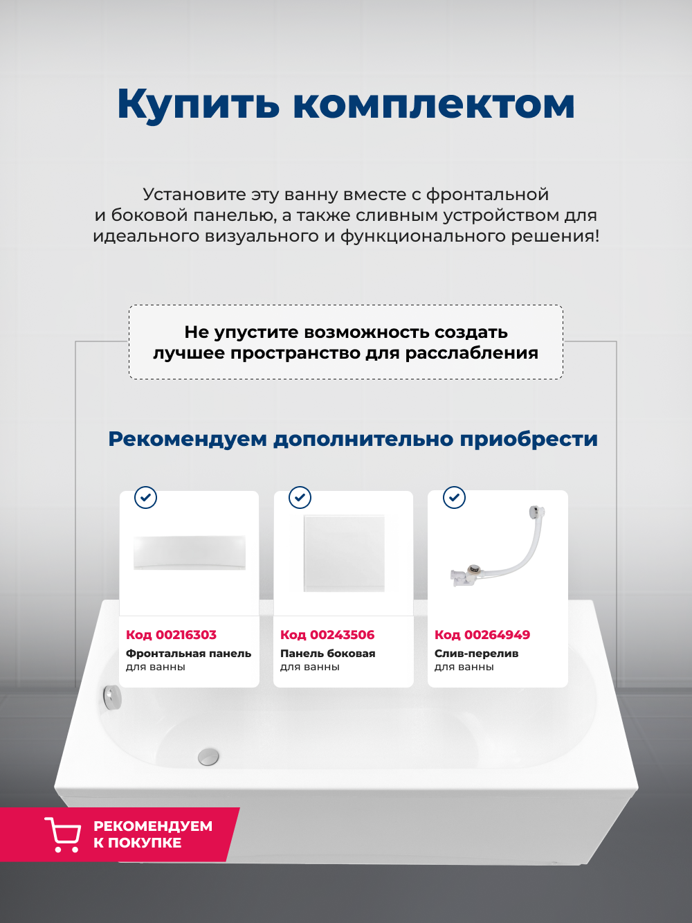 Акриловая ванна Aquanet Family Smart 170x78 88778-MW код 00260053, цвет белый матовый