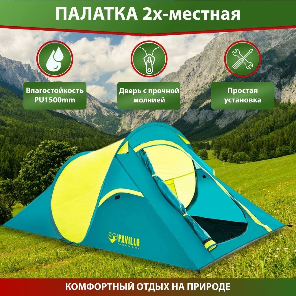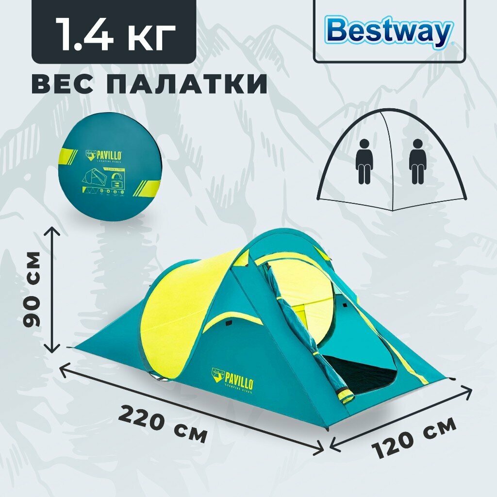 Палатка трекинговая двухместная Bestway Coolquick 2 Pop-Up 68097, бирюзовый/желтый