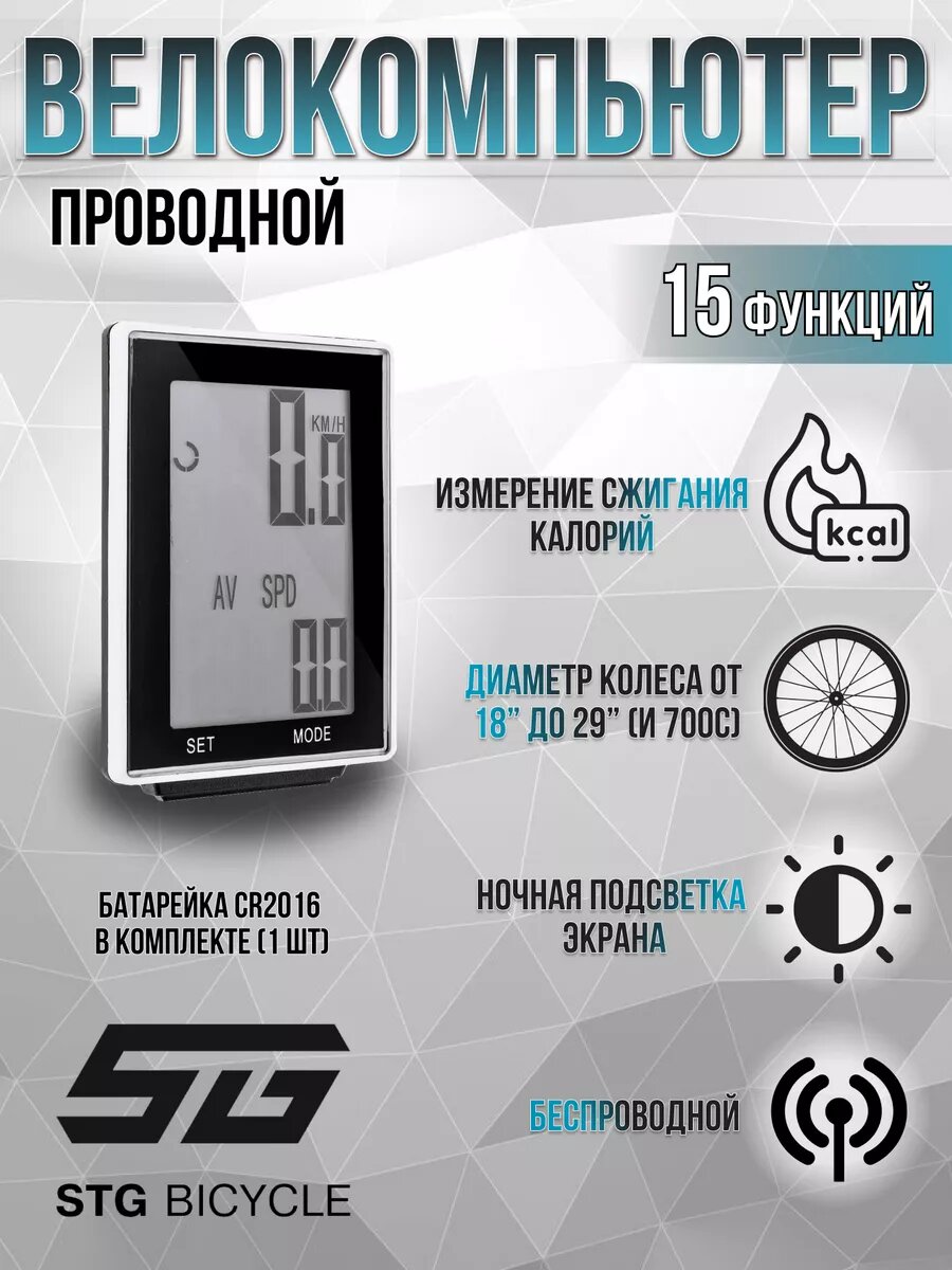 Велокомпьютер STG JY-M19-CL, проводной, 15 функций