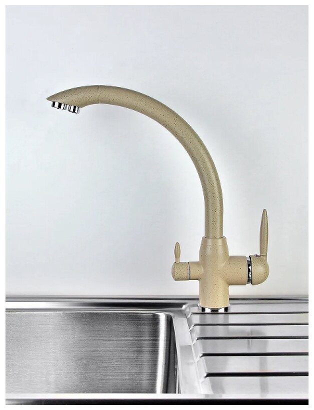 Смеситель для раковины на кухню с фильтром для питьевой воды. Кухонный кран с аэратором для мойки Viko V-5214 Песочный