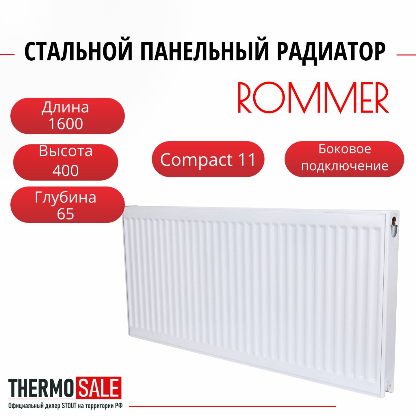 Купить Радиатор Rommer Compact 11/400/1600 400x1600 стальной панельный с боковым подключением