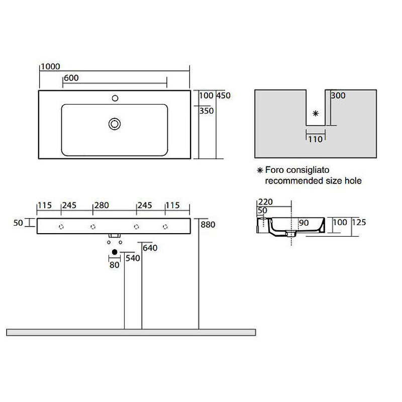 Раковина Kerasan Cento 355001*1 подвесная / накладная, 100х45 см, цвет белый