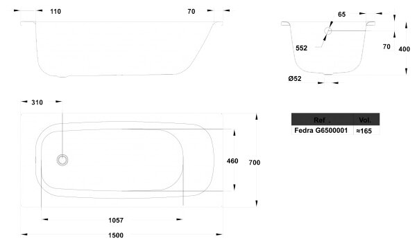 Стальная ванна Gala Fedra 150x70 6500001 интересное: