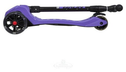 Купить Самокат-кикборд Novatrack RainBow, для детей, складной, свет.широкие колеса PU пер.135*35 задн.90*24мм, ватер стикер, аксессуар-компас на руле, фиолетовый