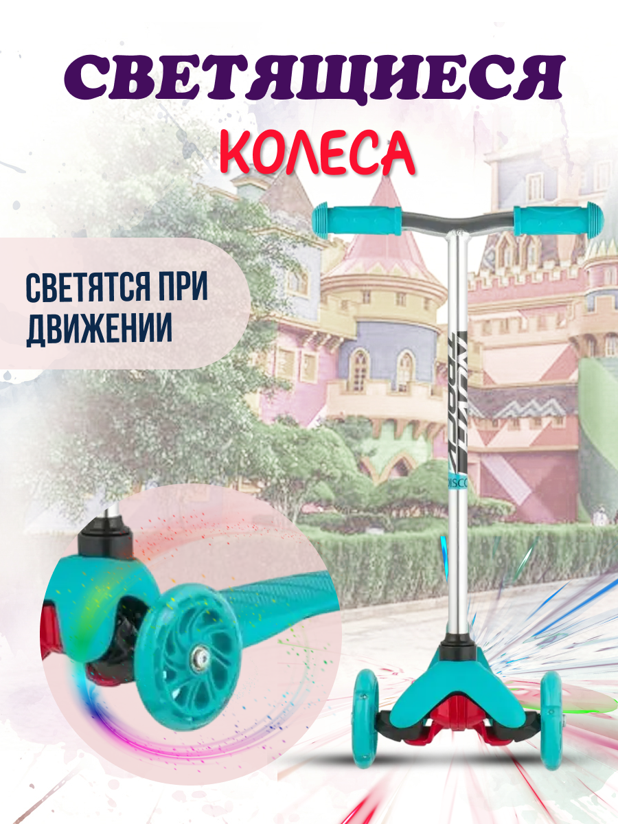 Самокат Novatrack Disco-Kids Start детский 3-кол. бирюзовый/серебристый (120DISCOKIDS.SGN20)
