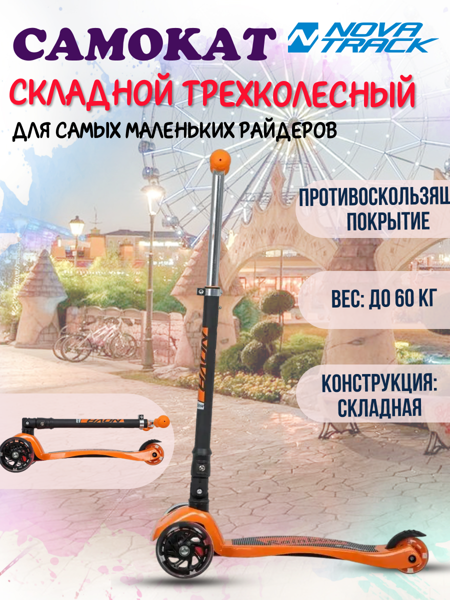 Самокат детский складной трехколесный Novatrack RainBow Start Folding оранжевый