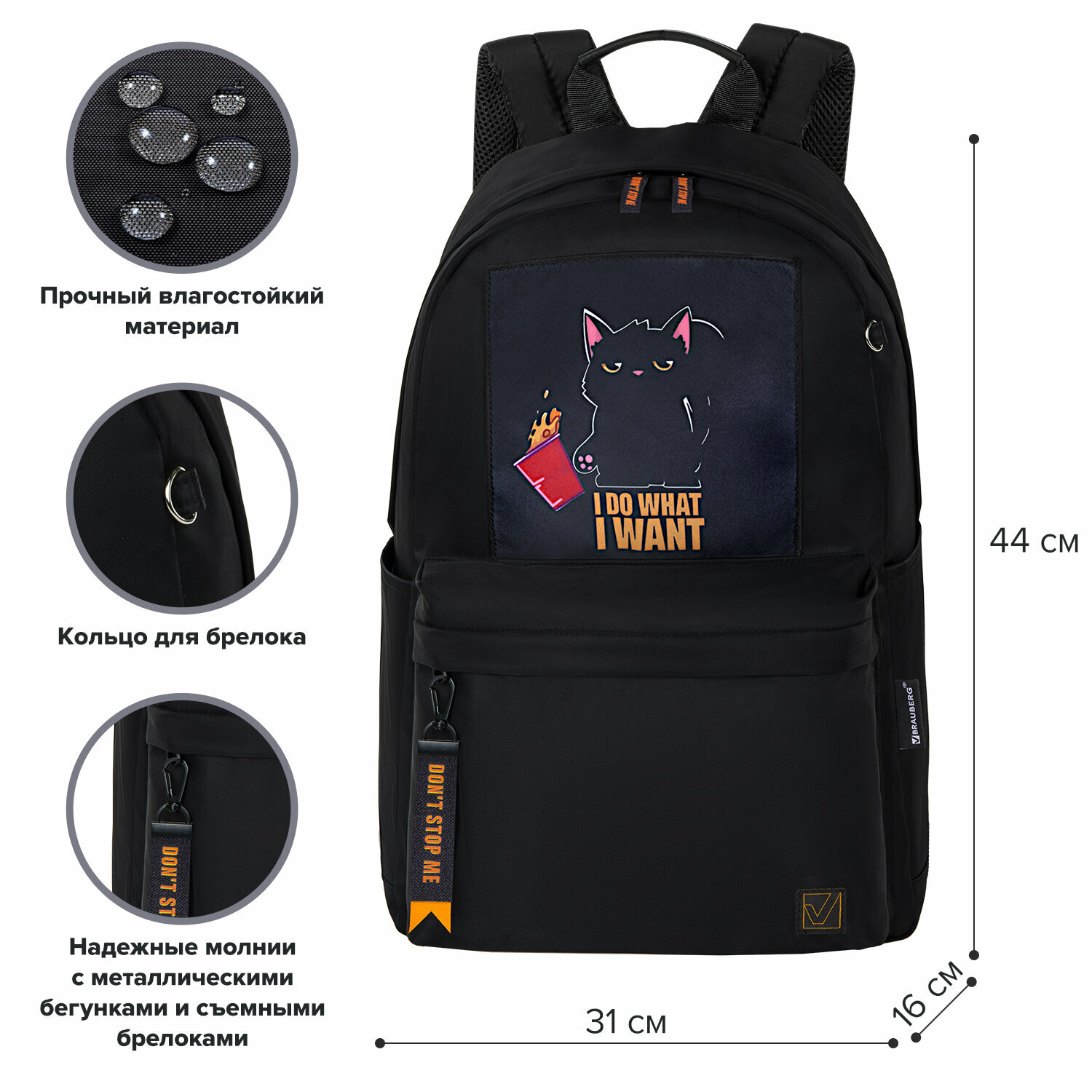 СохранитьРюкзак Brauberg 272569 FASHION CITY универсальный, карман-антивор, Cat, черный, 44х31х16 см интересное: