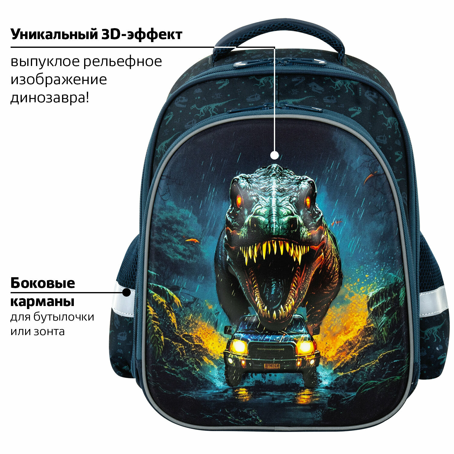 Купить Рюкзак школьный для мальчика, портфель для первоклассника ортопедический, ранец детский в школу, 2 отделения, 3D-панель, Brauberg Kids Dino chase, 272036