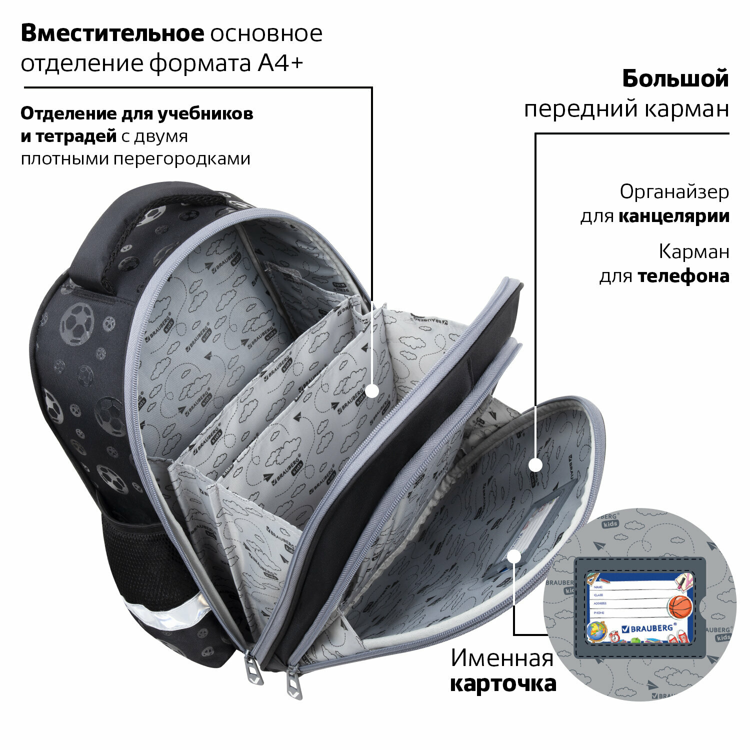 СохранитьРюкзак школьный для мальчика, портфель для первоклассника ортопедический, ранец детский в школу, 2 отделения, 3D-панель, Brauberg Kids Score ball, 272037 интересное: