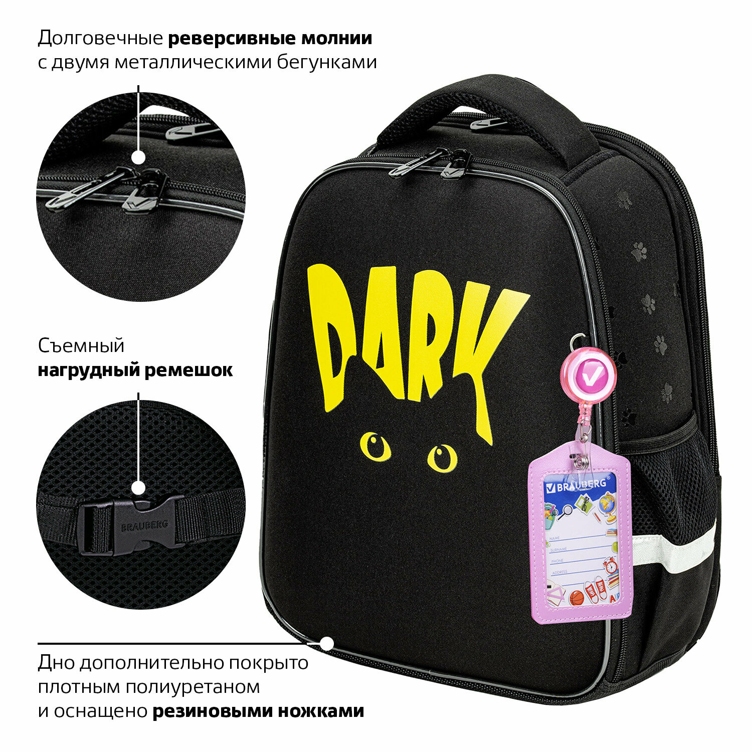 Ниже Вы можете прочитать отзывы на Рюкзак школьный для девочки, портфель для первоклассницы ортопедический, ранец детский в школу, 2 отделения, 38х27х14 см, Brauberg Dark cat, 272026, ознакомится с подробными характеристиками, посмотреть интересные обзоры и фотографии на Рюкзак школьный для девочки, портфель для первоклассницы ортопедический, ранец детский в школу, 2 отделения, 38х27х14 см, Brauberg Dark cat, 272026.