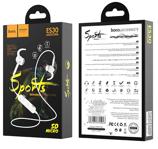 Наушники ES30, HOCO, беспроводные спортивные наушники, белые