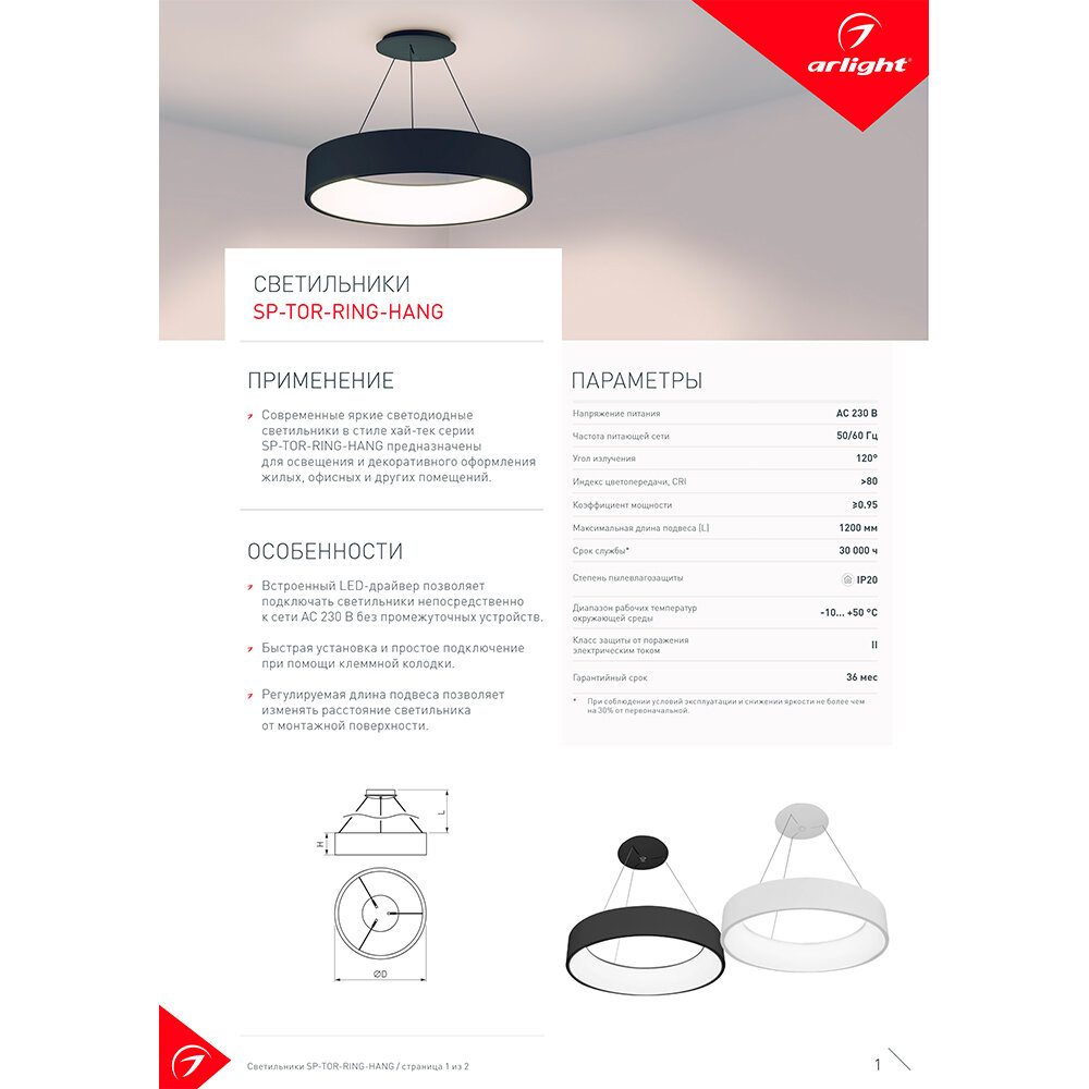 Сохранить023394(1) Светильник SP-TOR-RING-HANG-R600-42W Day4000 (BK, 120 deg) (Arlight, IP20 Металл, 3 года) интересное: