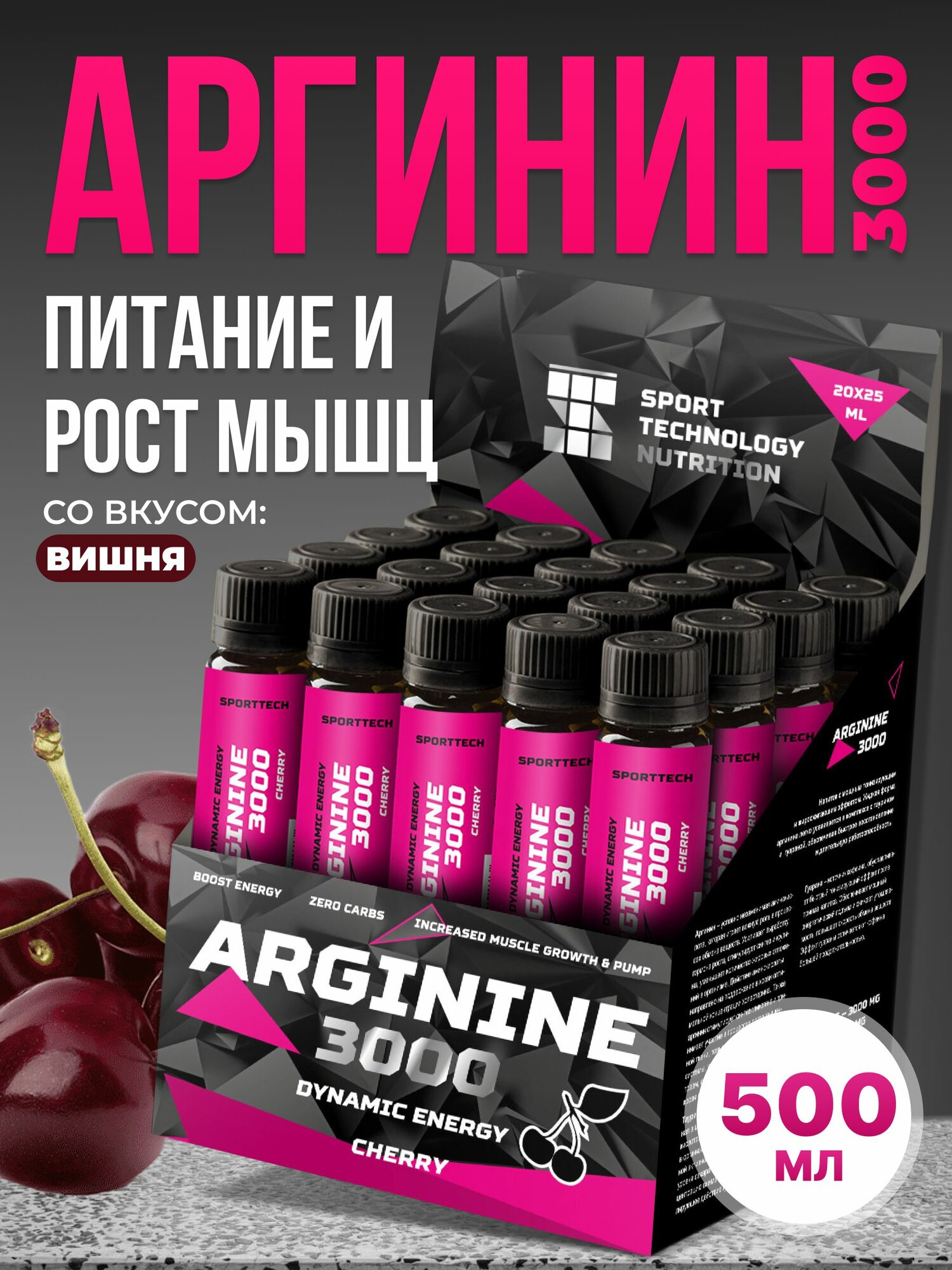 Купить L аргинин (arginine) 3000 мг спортивное питание аминокислоты, витамины для мышц и мужского здоровья с вкусом вишни, 20 ампул по 25 мл